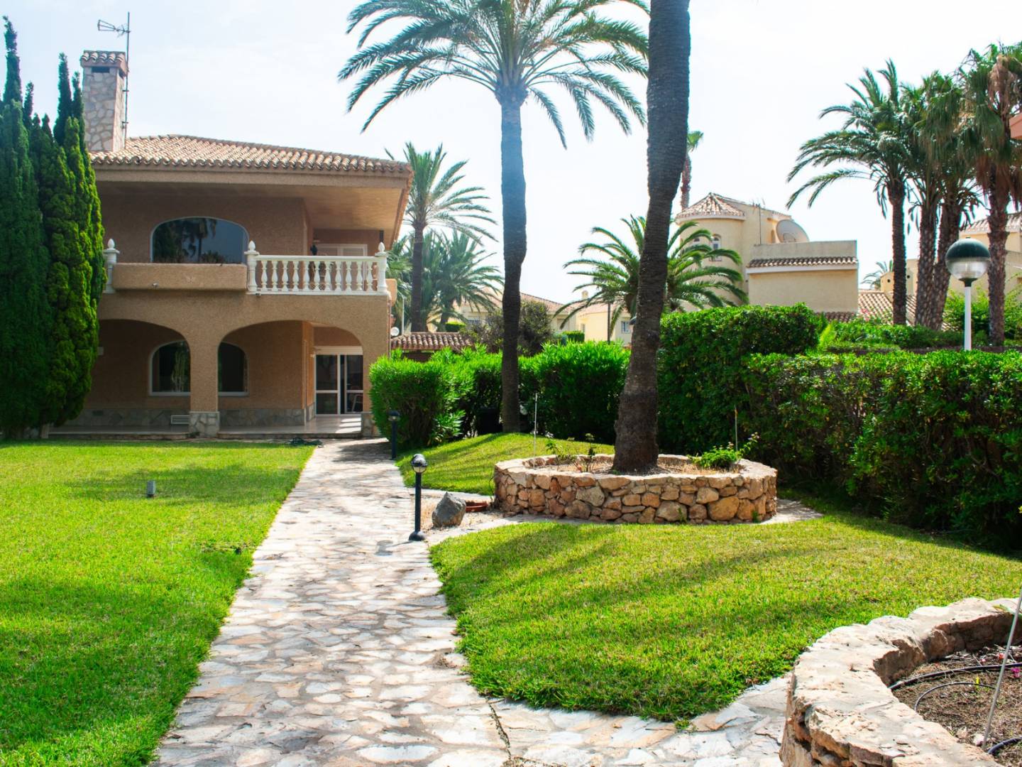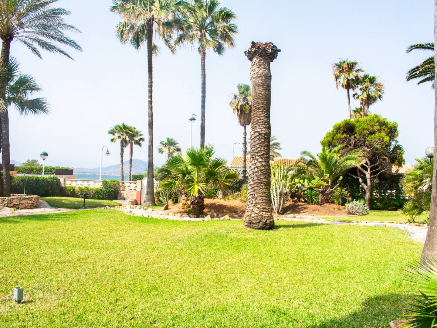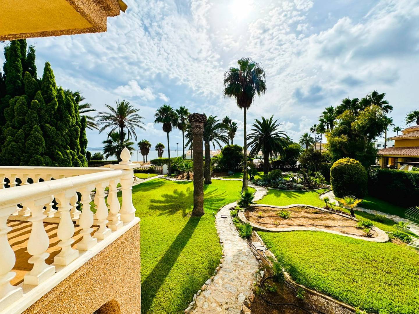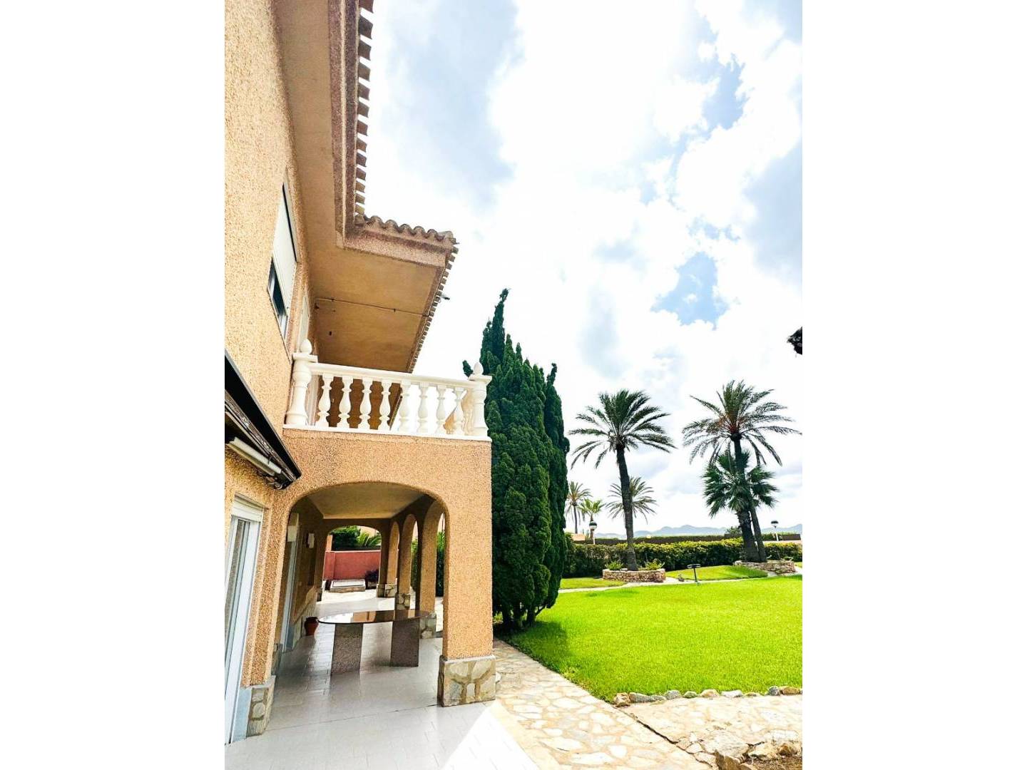 We present to you a true gem by the sea: a detached beachfront villa located southwest of La Manga , on the coveted Costa Cálida . This unique property sits on an impressive 1,900 m² plot , surrounded by lush vegetation, palm trees , and a beautiful private garden that evokes a true sense of paradise.