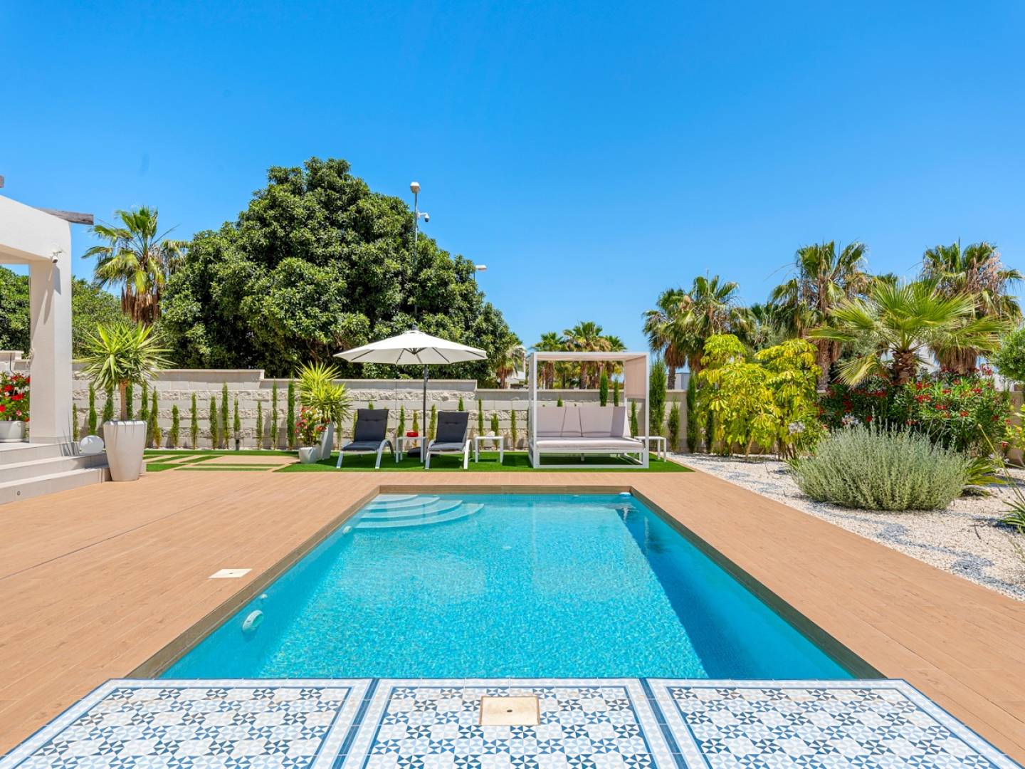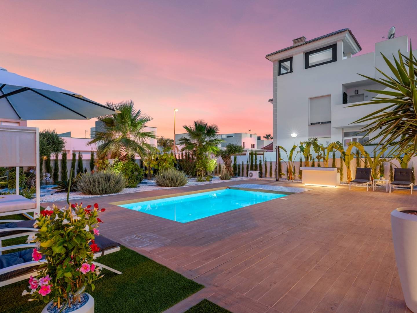 The villa is equipped with Climalit windows, a reinforced entrance door, and high-quality finishes that ensure security, efficiency, and comfort. It is just minutes from supermarkets, restaurants, golf courses, green areas, and the iconic Torrevieja lagoons. The beaches of Guardamar and Alicante Airport are also a comfortable drive away.