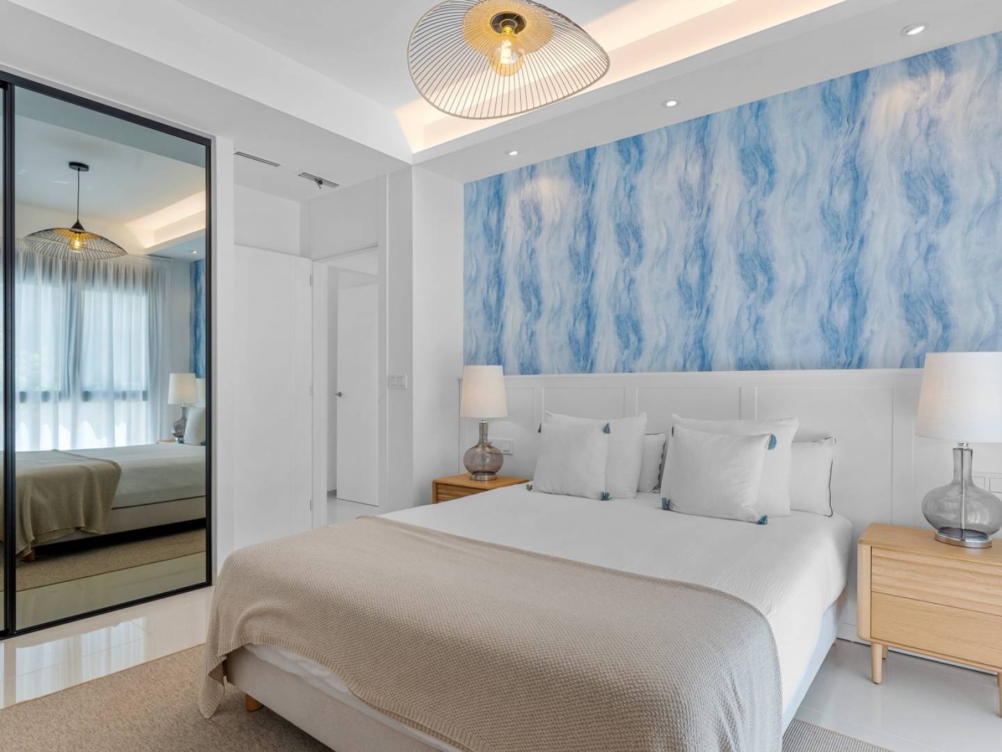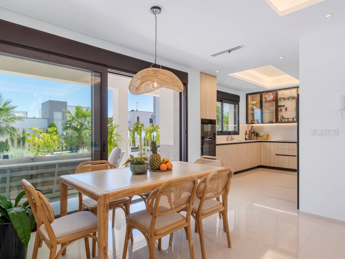The interior offers a carefully thought-out layout, with a spacious living-dining room bathed in natural light and an open-plan kitchen that connects directly to the terrace, ideal for enjoying the Mediterranean lifestyle. It features three bedrooms and two bathrooms, one en suite in the master bedroom, as well as a practical laundry room with access to the exterior.