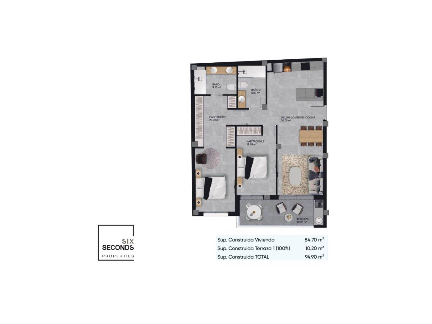 At Six Seconds Properties, we'll help you turn your new property into the home of your dreams by giving you a €1,900 furniture gift voucher and a technical visit to the home, where our technical team will advise you on home improvement options. Completely free!