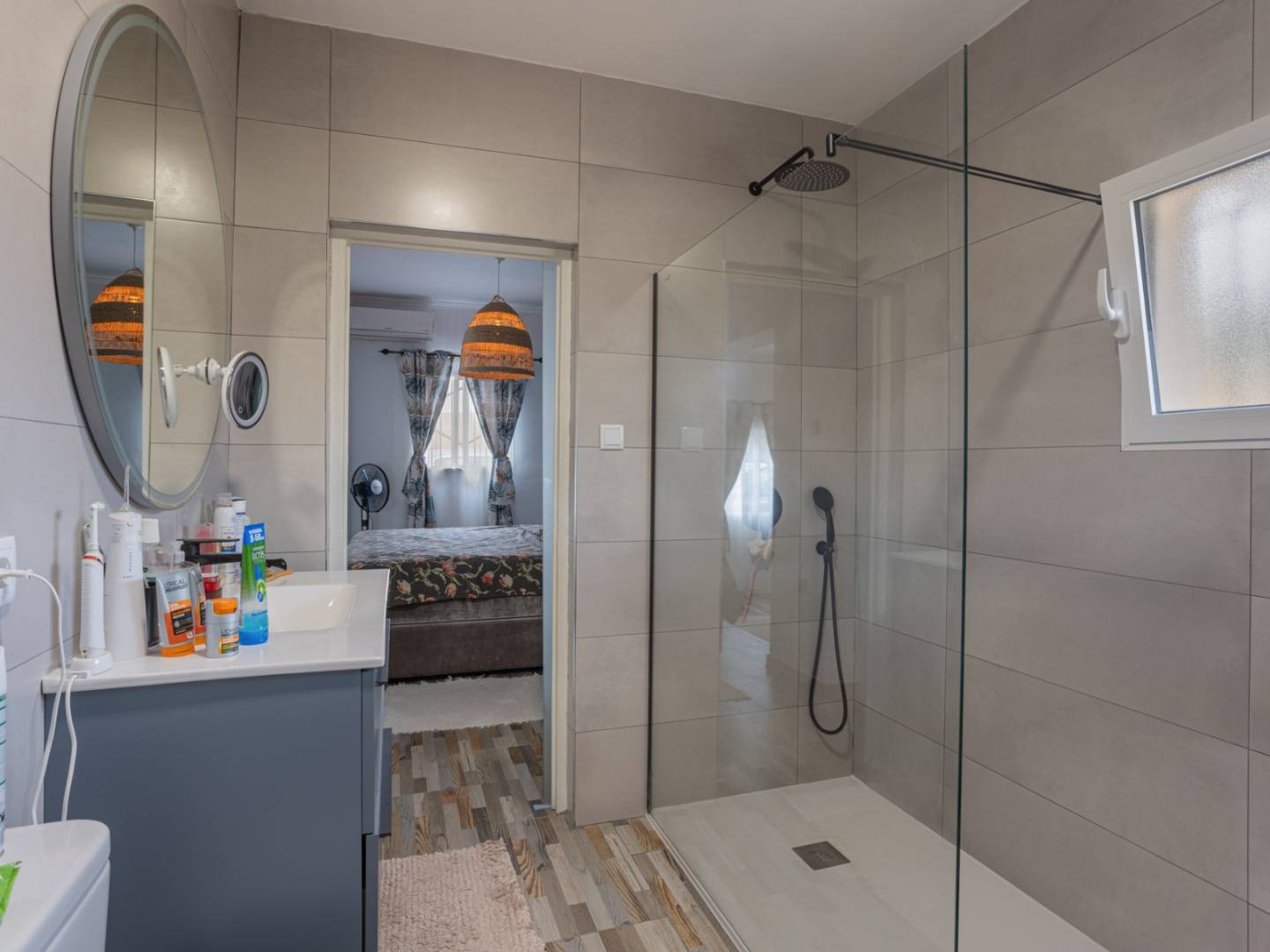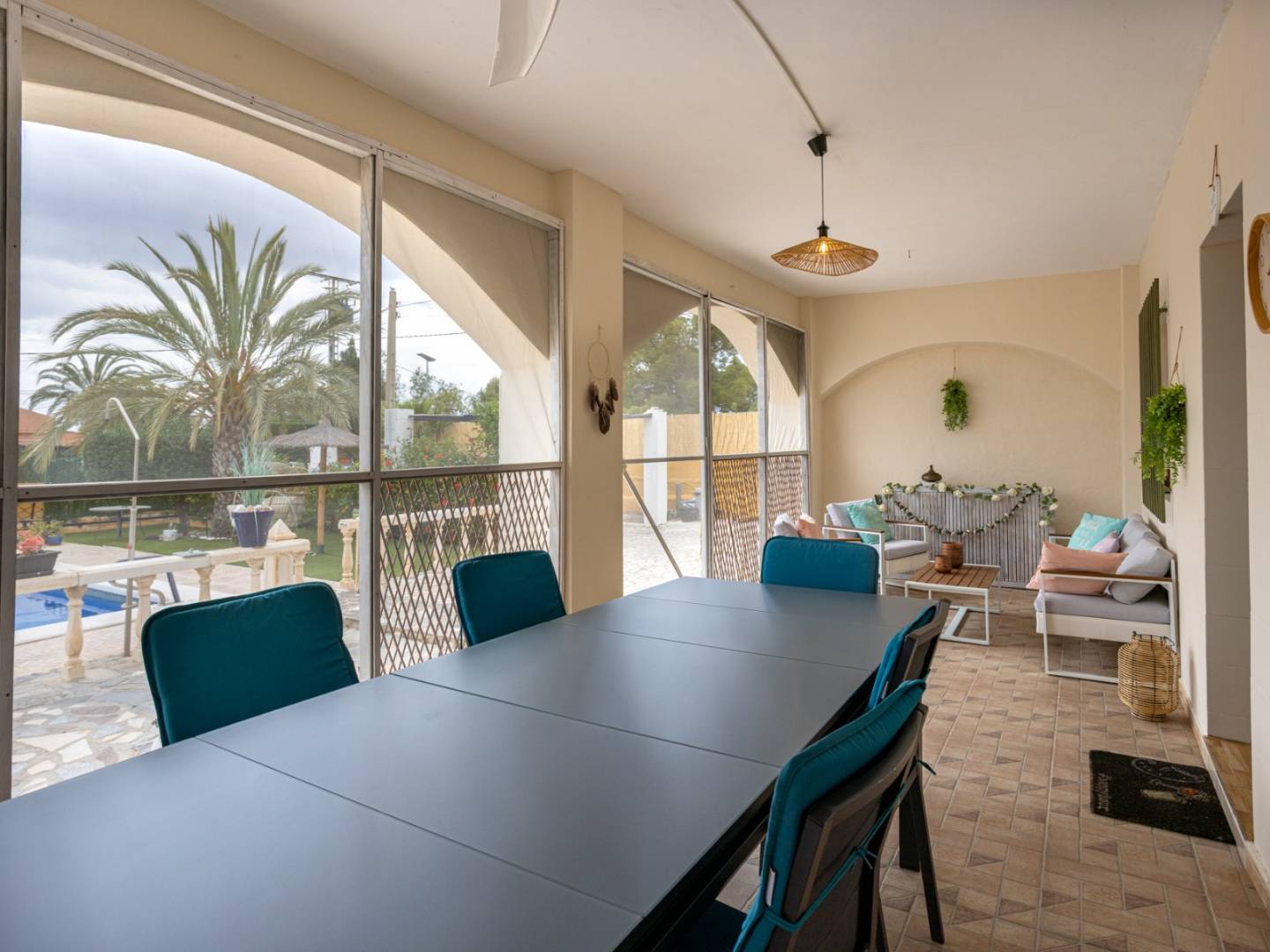 The main residence , measuring 117 m², impresses with its spaciousness and natural light. It has three bedrooms (one en suite), two bathrooms, an open kitchen integrated into a cozy living room, and a covered porch with panoramic views of over 4,000 km² , stretching as far as Alicante and the sea. The exterior features a well-kept garden with trees, an 8x4-meter floodlit pool, a solar shower, and relaxation areas.