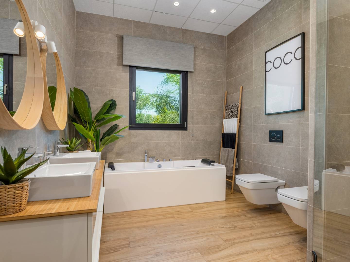 Welcome to this recently built home, completed in November 2022.It has a single floor with a built-in surface of 320 square meters and 5-meter-high ceilings. The property has a 17,000-square-meter plot and is fully fenced. It is very well located, just off the highway between Elche and Santa Pola, just 4 km from Santa Pola beach and 6 km from Elche. The home has a 45-square-meter living-dining room with a built-in fireplace, connected to a large 40-square-meter designer kitchen with a room for ironing and appliances. The kitchen has a 4-meter central island with a breakfast bar, an 80-bottle wine cellar, two hidden refrigerators with freezers, and Bora induction cooktops with a Teppanyaki grill and countertop extractor. There is plenty of storage, and all cabinets and drawers have LED interior lighting. The property has 5 spacious bedrooms distributed into a children's living room, an office, and a gym, a 20-square-meter bedroom, an 18-square-meter bedroom, and a 67-square-meter master bedroom. The master bedroom has a 20-square-meter walk-in closet with LED lighting and a central island, and has direct access to the garden and pool. All bedrooms have Smart TVs. The home has 3 full bathrooms with showers, 1 guest bathroom in the living area, and 2 bathrooms with whirlpool tubs. All bathrooms have electronic showers with displays to control water temperature and pressure, rainfall showerheads, and underwater music systems with radio and Bluetooth. All 3 bathrooms have underfloor heating in the showers. The master bathroom has a large double shower with a seat. As for the amenities, it has air conditioning with 10 independent Air Zone zones, allowing for a different temperature in each room. It has 3 Mitsubishi units with 30,000 frigories. Everything is controlled from 10 color screens located throughout the house and in each room. It can also be controlled from your mobile phone. The house also has underfloor heating with a gas boiler and Air Zone, and each room can be set to a specific temperature. It can be controlled from your mobile phone. The house has a Zhender controlled mechanical ventilation (CMV) system that moves 300 cubic meters of air per hour, ensuring that the house is always well ventilated, expelling polluted air and odors from the interior and introducing fresh, filtered air at the same temperature from outside. This means that the windows never need to be opened to ventilate the house.The property has a 6,000-square-meter garden with palm and olive trees, 3,200 square meters of natural grass with an automatic robotic lawnmower, an 8x3 meter pool with a natural waterfall, and a 20-square-meter pergola.The house faces southeast and features 23 double-glazed security windows with four panes (4+4 and 6+6) and an argon gas chamber.The house has excellent acoustic and thermal insulation, thanks to a ventilated roof and a polyurethane foam and rock wool ceiling. It has double walls of thermoclay and brick, with 600 mm of rock wool between the walls. It has an A+++ energy rating, which means significant energy savings in both winter and summer.All the blinds are motorized by Cherubini and can be controlled from a mobile phone.The home has an alarm and several perimeter sensors, both inside and outside, which are controlled from a mobile phone.It also has 10 surveillance cameras outside, which can be controlled from a mobile phone. For more information, or to arrange a viewing, contact us today!