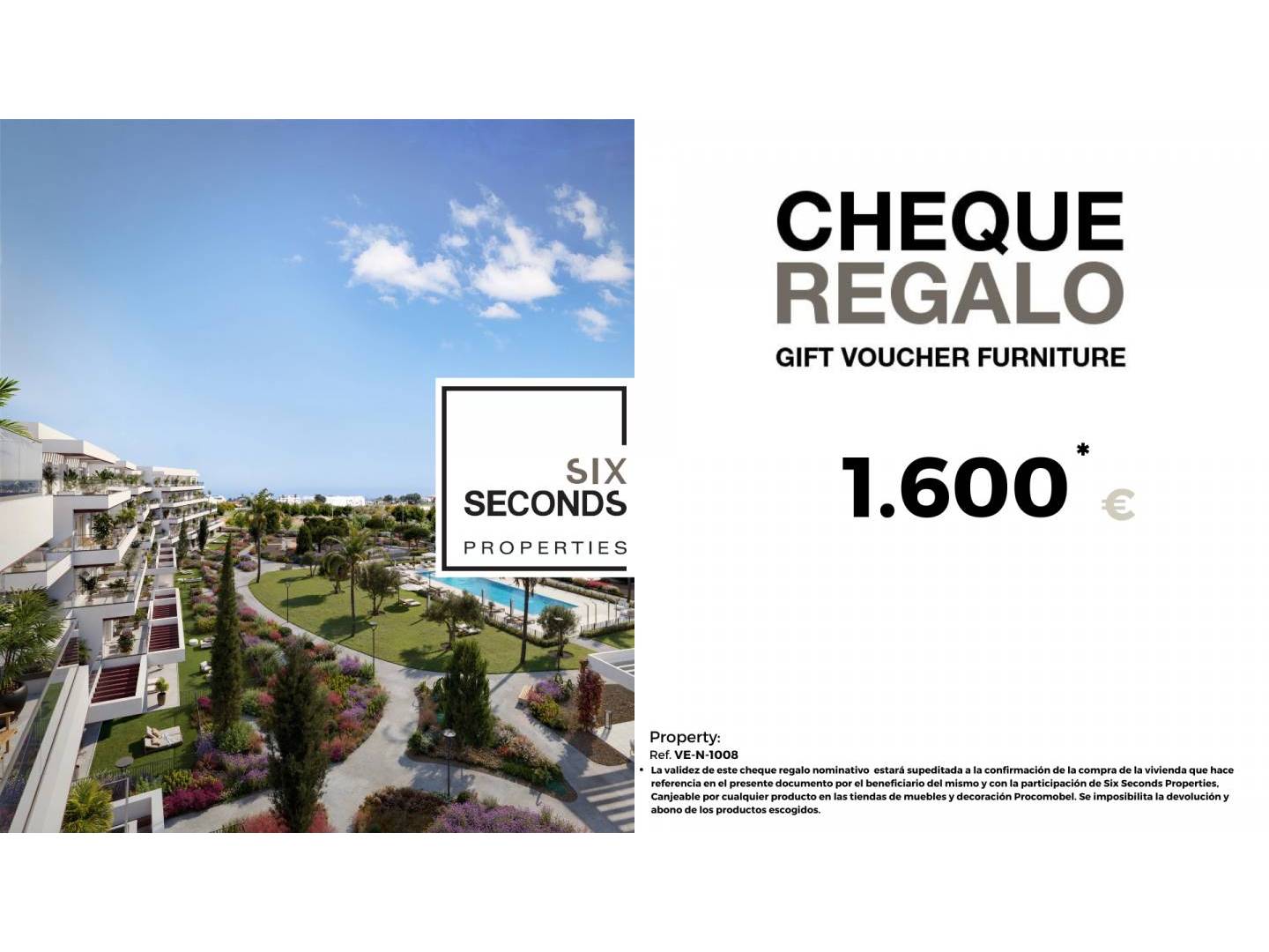 In Six Seconds Properties helps you turn your new property into the home of your dreams by giving you a €1,600 furniture gift voucher and a technical visit to the home, where our technical team will advise you on home improvement options. Completely free!