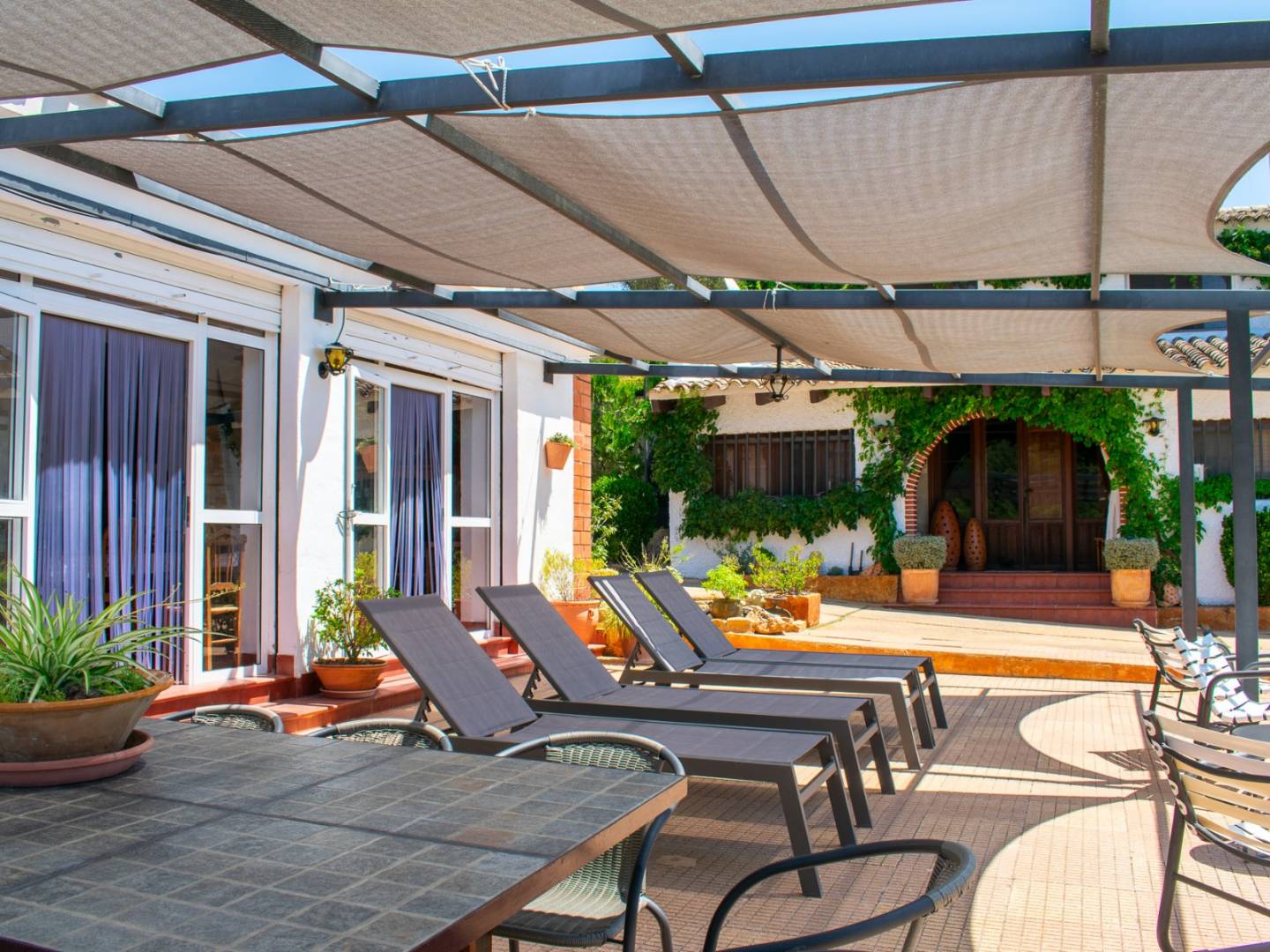 The property features a 96 m² guest house , of which 28 m² is used for a dining room and barbecue area and the rest for living quarters. There is also a 194 m² main farmhouse , which is divided into two additional living quarters: