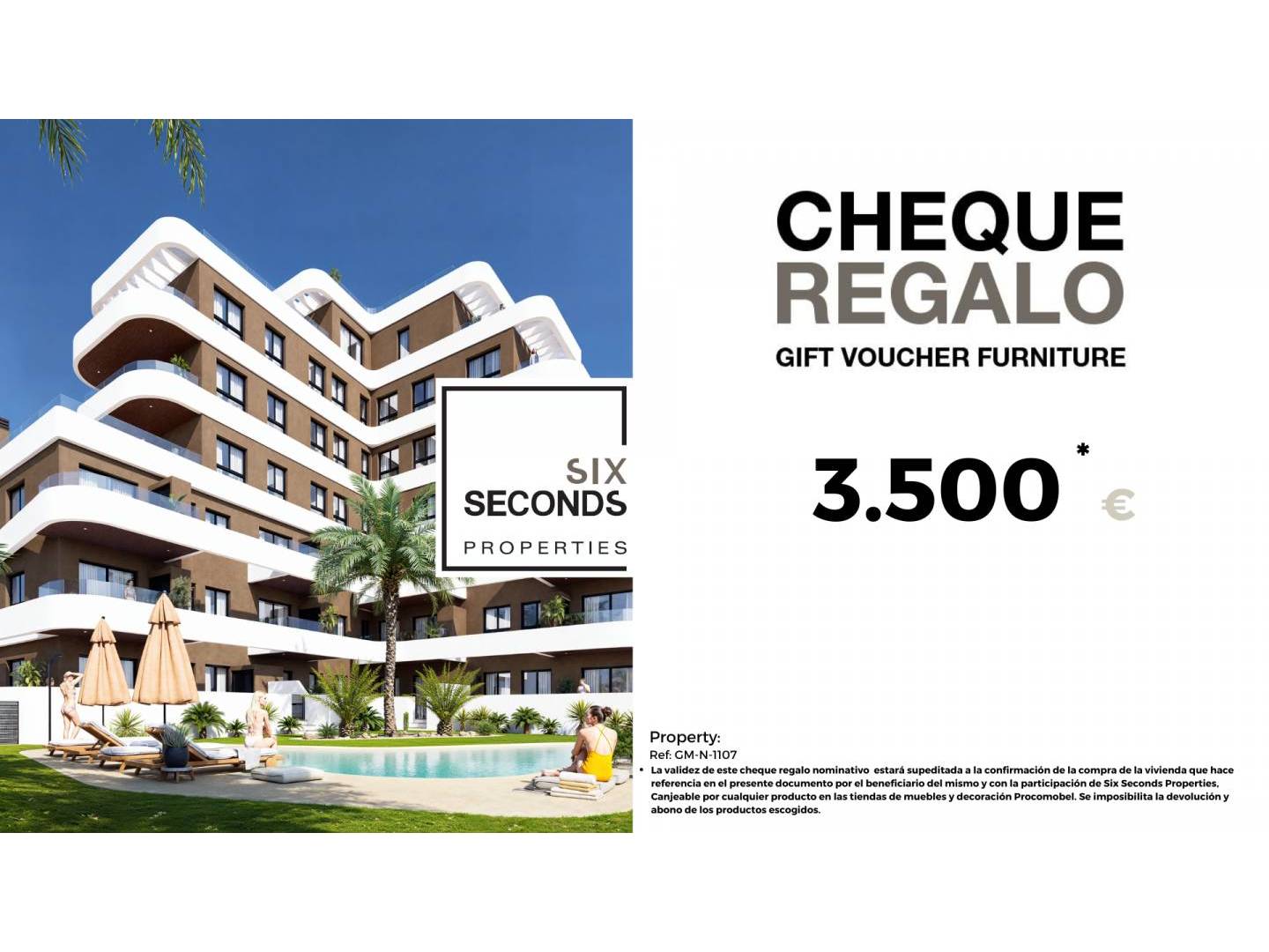 At Six Seconds Properties, we'll help you turn your new property into the home of your dreams by giving you a €3,500 furniture gift voucher and a technical visit to the home, where our technical team will advise you on home improvement options. Completely free!