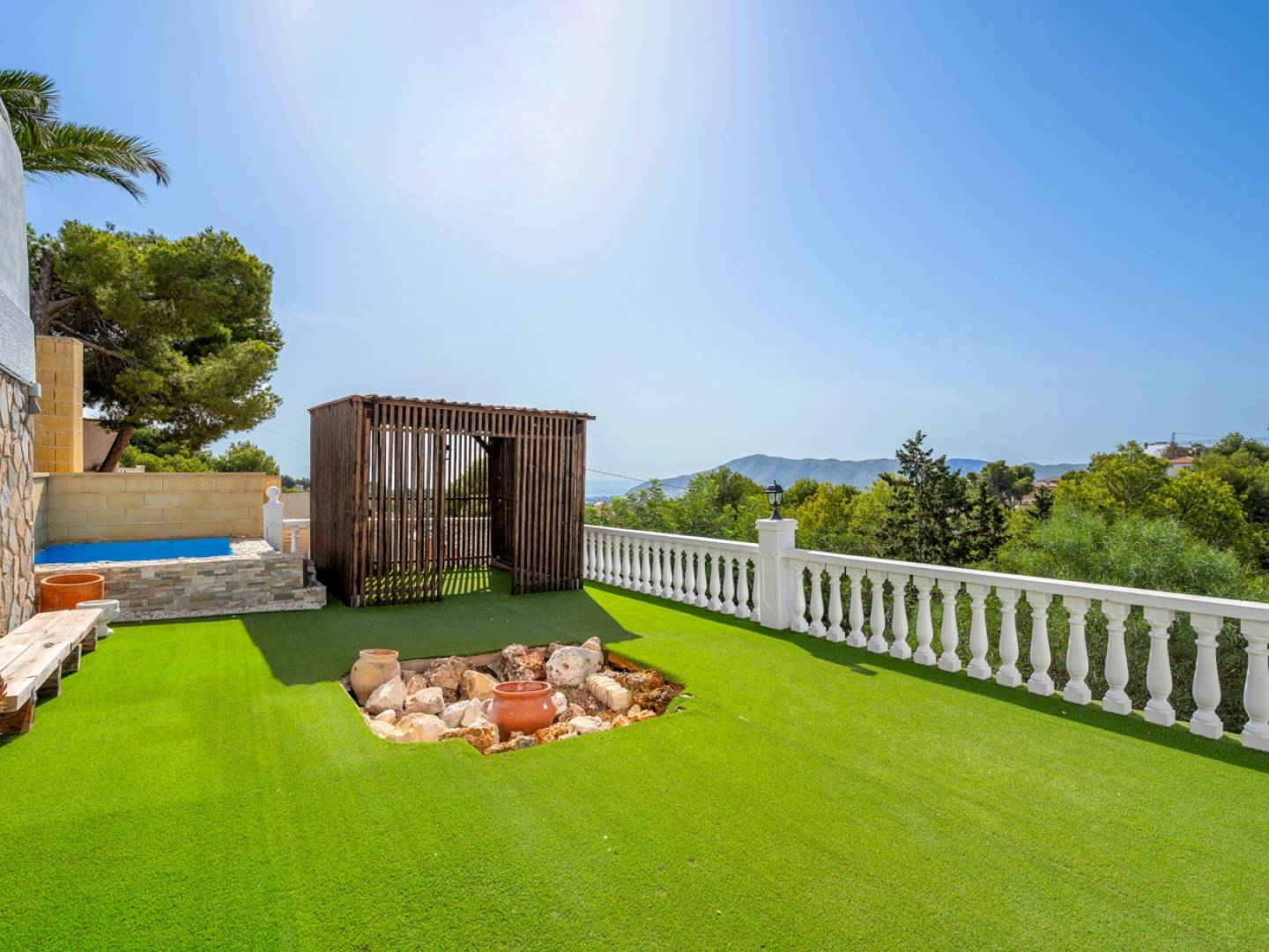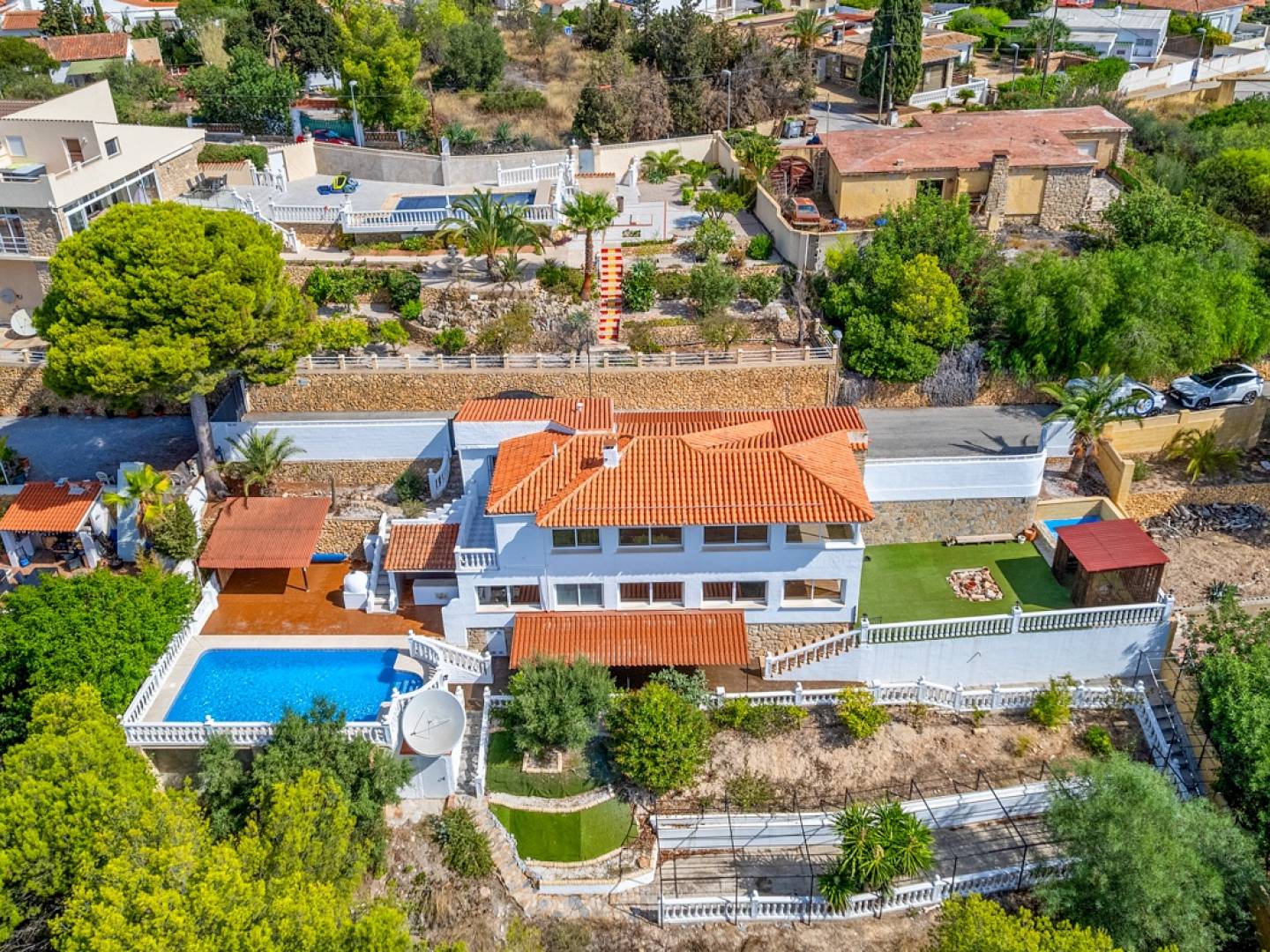 The ground floor houses four double bedrooms, two of which have direct access to the garden, along with two full bathrooms and a spacious chill-out area. From here, you can access the 36 m² private pool, surrounded by an elegant sun terrace, a covered bar, a pizza oven, and a wooden porch, all designed to fully enjoy the privileged climate of the Costa Blanca.