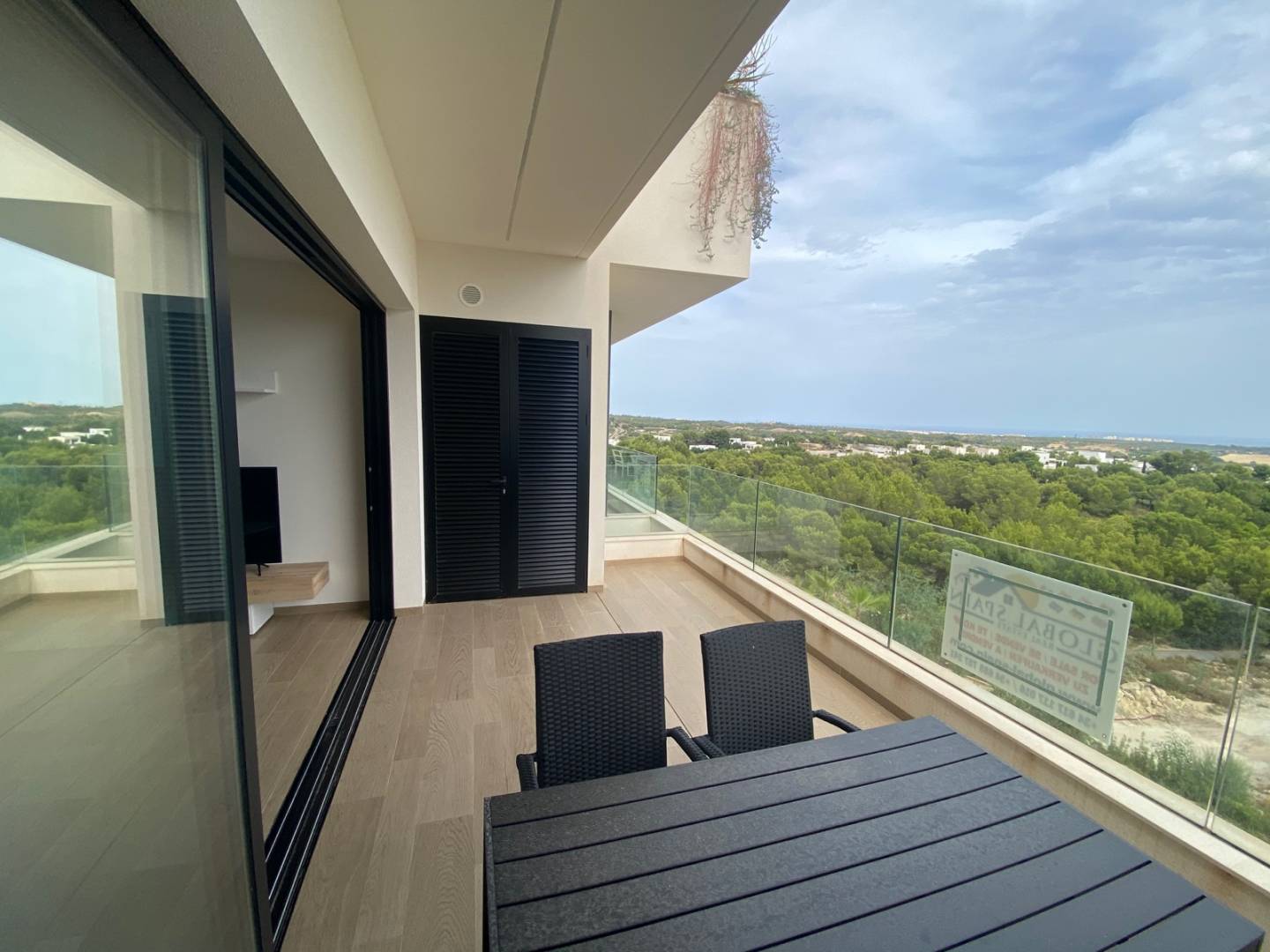 Immediately ready to move in and fully furnished Luxury apartment with panoramic views over the coastline located in one of the most prestigious resorts of the Costa Blanca; Las Colinas Golf Resort. This apartment is immediately available and comes: Fully furnished. The very latest home automation. Siemens kitchen appliances. Induction Air conditioning both heat and cooling throughout the house. Underfloor heating in the bathrooms. LED and mood lighting. Electric shutters. Underground private parking space. Beautiful communal garden with swimming pool.