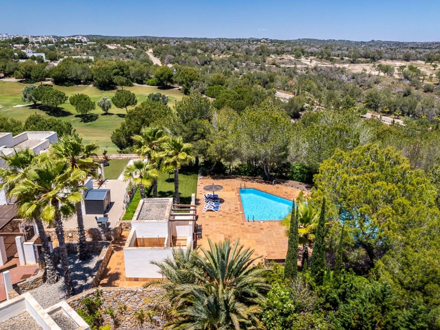 Stunning 3-Bedroom Villa in the Prestigious Las Colinas Golf & Country Club Welcome to this beautifully maintained and stylishly furnished 3-bedroom, 3-bathroom villa, nestled within the exclusive Las Colinas Golf Resort one of the most sought-after gated communities on the Costa Blanca. Just a 20-minute drive from the idyllic white sandy beaches of the Mediterranean and conveniently located near the charming towns of San Miguel de Salinas and Villamartín, this home offers the perfect blend of luxury, comfort, and security. Set within a secure enclave of just 12 properties, this townhouse offers peace of mind with 24/7 security and a gated entrance. The home benefits from private off-road parking for two vehicles right at the entrance. Step inside to discover a bright and airy open-plan living and dining space, seamlessly connected to a sleek glass-curtain conservatory and a beautifully landscaped garden perfect for relaxing or entertaining. A modern, fully equipped kitchen and a separate utility area make everyday living a breeze. The ground floor also hosts a spacious double bedroom with fitted wardrobes and a contemporary shower room. Upstairs, youll find two generously sized en-suite bedrooms. The master suite is a true retreat with a walk-in wardrobe and tranquil green views. Outdoor living is just as impressive with a tiled patio area ideal for al fresco dining and summer barbecues, plus a manicured artificial lawn that provides lots of outside space to enjoy the sunny life in SpainThere even is a possibility to built a private pool in the garden! Extra features include: Hot & cold air conditioning Central heating Fully furnished Private parking Gated community with top-tier security Lots of Privacy and wonderfull views! Communual pool and option to built your private pool! This is a rare opportunity to own a property in one of Spains premier golf resorts perfect as a holiday home, investment, or full-time residence.