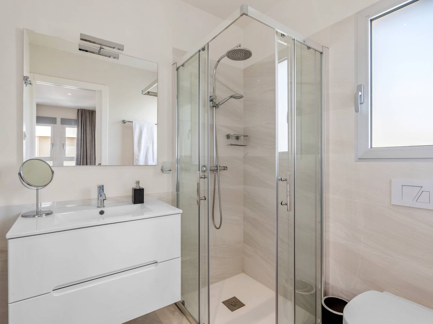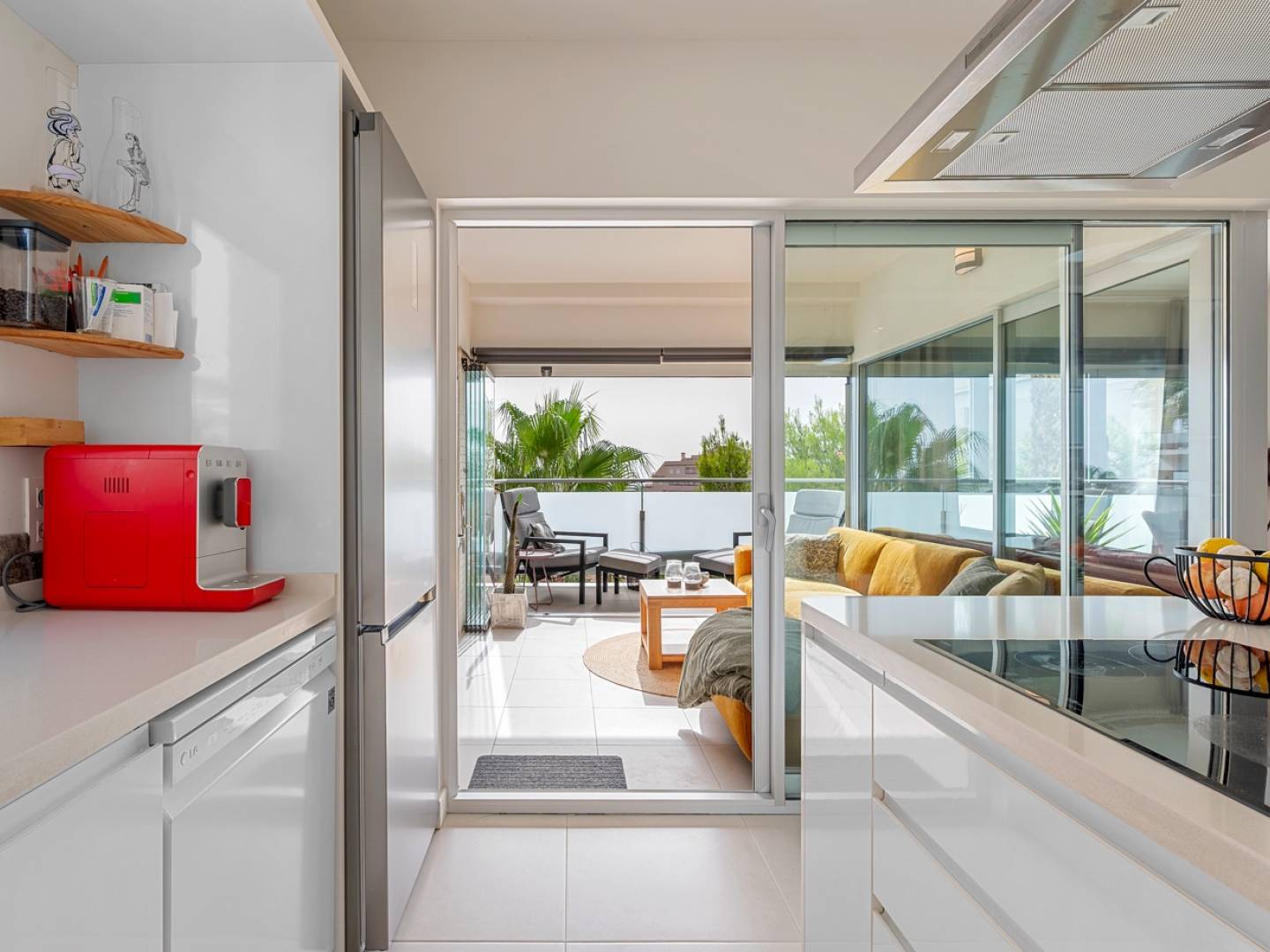 The apartment boasts a modern and functional design , with a bright living room that extends onto a glazed terrace , ideal as an additional living area or dining room with stunning views of the Mediterranean Sea . This space invites you to relax and enjoy the unmistakable Mediterranean lifestyle.