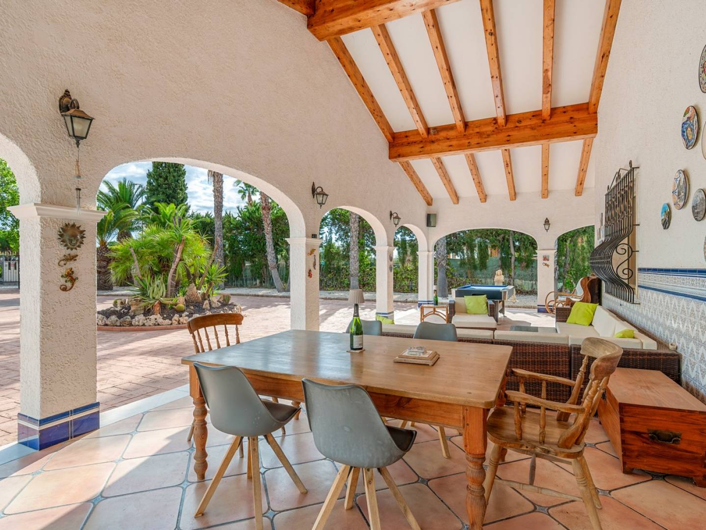 Between the sea and the city of Elche stands this spectacular Mediterranean-style villa, where every detail has been designed to enjoy a sunny, peaceful, yet vibrant lifestyle.On a 2,220 m² plot, the property offers the perfect balance of privacy, freedom, and relaxation. It features private parking for two cars, plus additional space for motorbikes or smaller vehicles, and large open areas where the little ones can run and play safely. Its spacious double-oriented porch invites you to relax at any time of the day or become the favourite gathering spot for friends and family to enjoy a barbecue or paella by the outdoor kitchen.On the side, there is a guest house with a fully equipped bedroom and bathroom perfect for visitors. Behind the main house, the private pool and its wide terrace become the heart of the home during the sunniest days. Inside, this home keeps its warm and welcoming soul. The fully equipped kitchen includes an underground wine cellar ideal for wine lovers. The British-style living-dining room combines charm and comfort. On the same main floor, there are three spacious bedrooms and two full bathrooms (one of them en suite with direct access to the pool), while the office space offers the possibility to work from home or even convert it into an extra bedroom. Upstairs, calm takes the spotlight: imagine reading your favourite book in the reading lounge while listening to the crackle of the fireplace, or enjoying a game night in the living area next to the private terrace. On this same floor, youll find the master bedroom, complete with a large dressing room and private bathroom. Located in a quiet yet well-connected area, this villa combines the best of every world: the salty air of the beach, the charm of a historic city like Elche, and the convenience of being just minutes from Alicante International Airport. A home with a true Mediterranean soul, no matter how you look at it.