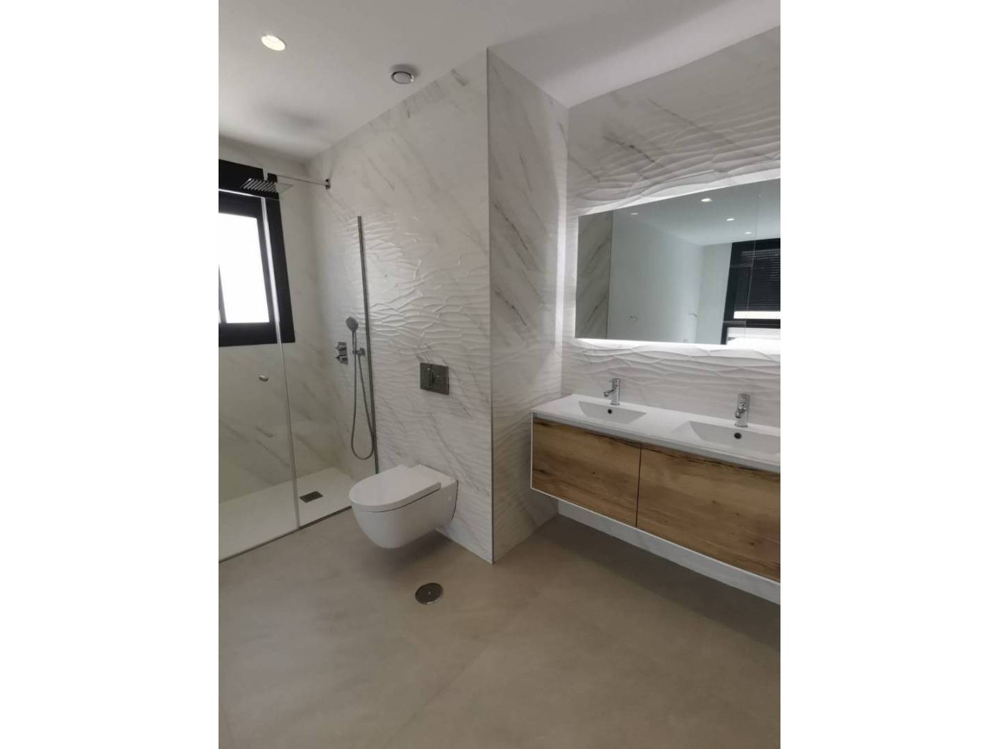 This detached villa has 153 m² of built area spread over several floors on a spacious 440 m² plot , offering bright spaces and a contemporary design. On the ground floor, there is an open-plan living room with large windows that maximize natural light and spaciousness , a modern, fully equipped kitchen , a bedroom , and a full bathroom . On the first floor, there are three bedrooms and two bathrooms , one of them en suite. The upper floor houses a private solarium , perfect for enjoying the Mediterranean climate and panoramic views.