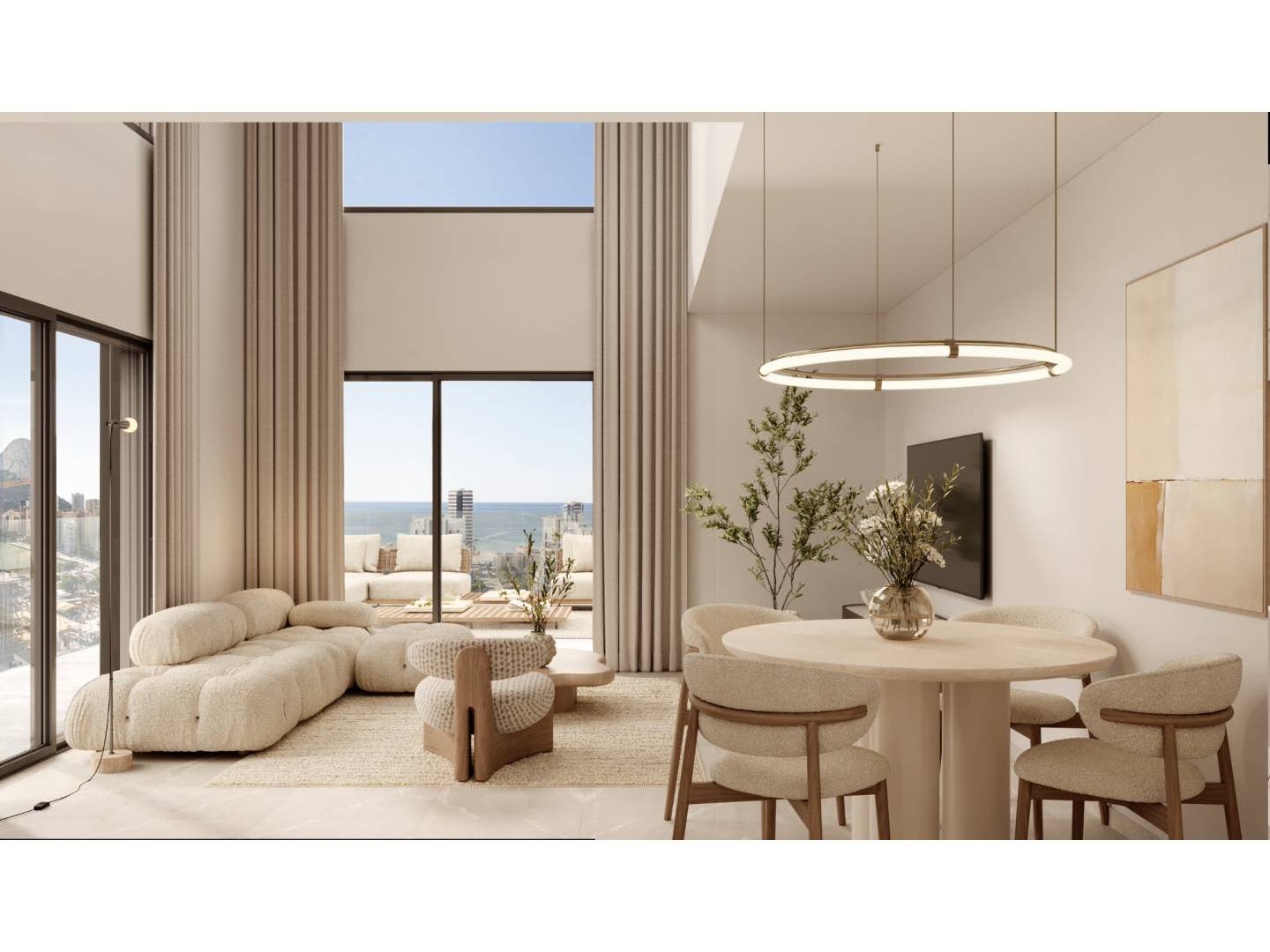 In the heart of Calpe , under the imposing silhouette of the Peñón de Ifach and facing the infinite blue of the Mediterranean, stands this great building, an architectural jewel that redefines the concept of design, well-being and modernity on the Costa Blanca .