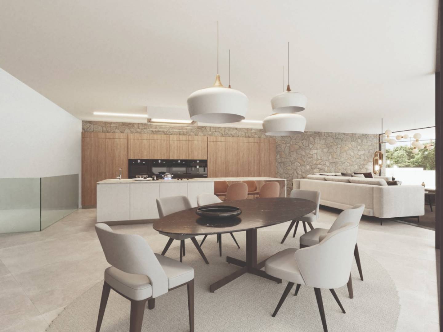Spread over three floors , it offers a spacious and functional design, with a constructed area of 568 m² on a 933 m² plot. The main floor houses an open-plan living and dining area , a modern, fully equipped kitchen with state-of-the-art appliances, and an interior patio that floods the home with natural light.