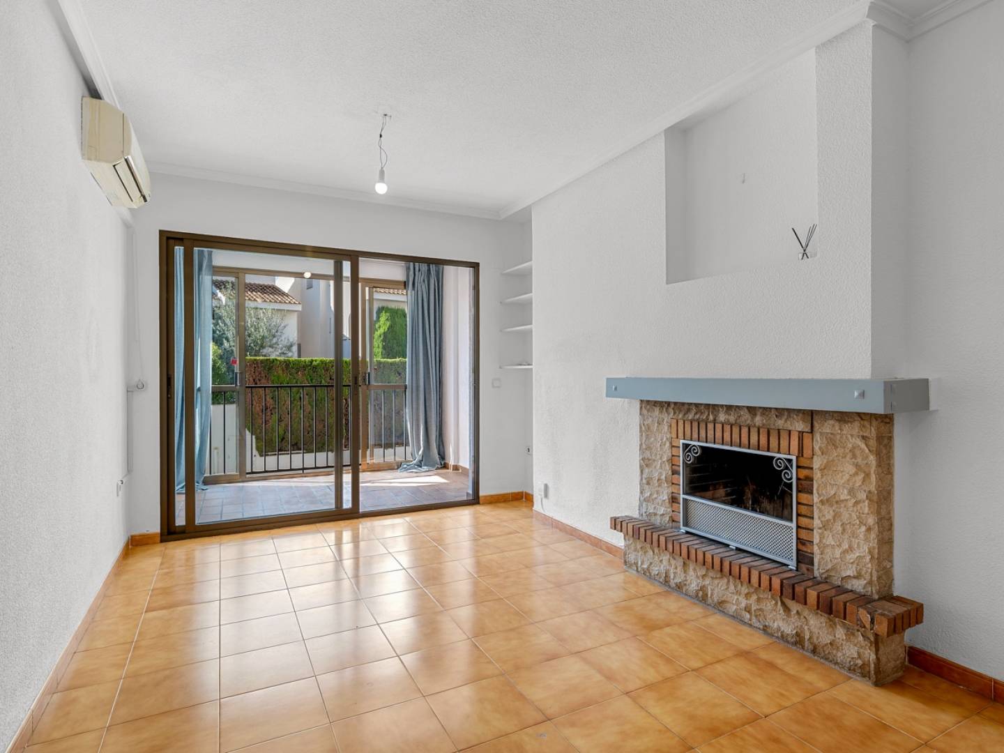 Located on the first floor , this charming apartment offers a bright and spacious living room with an open-plan kitchen , a comfortable bedroom , a full bathroom , and a private balcony with direct access from the living room. The interior is in excellent condition , with air conditioning , a traditional fireplace , and built-in storage spaces , creating a stylish and inviting atmosphere year-round. It is being sold unfurnished , offering the opportunity to decorate it to your personal taste and style .