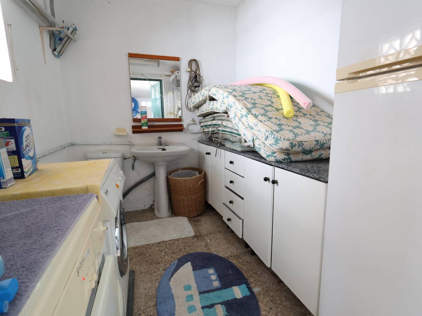 Distributed between the ground floor and basement , the house has four spacious bedrooms full of natural light, two full bathrooms , a spacious and welcoming living-dining room , separate kitchen , glazed terrace , storage room and parking area within the plot .