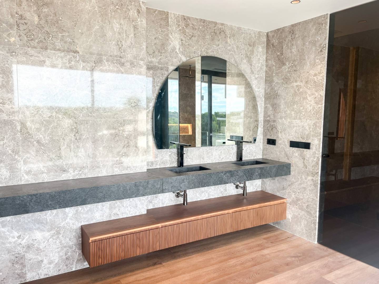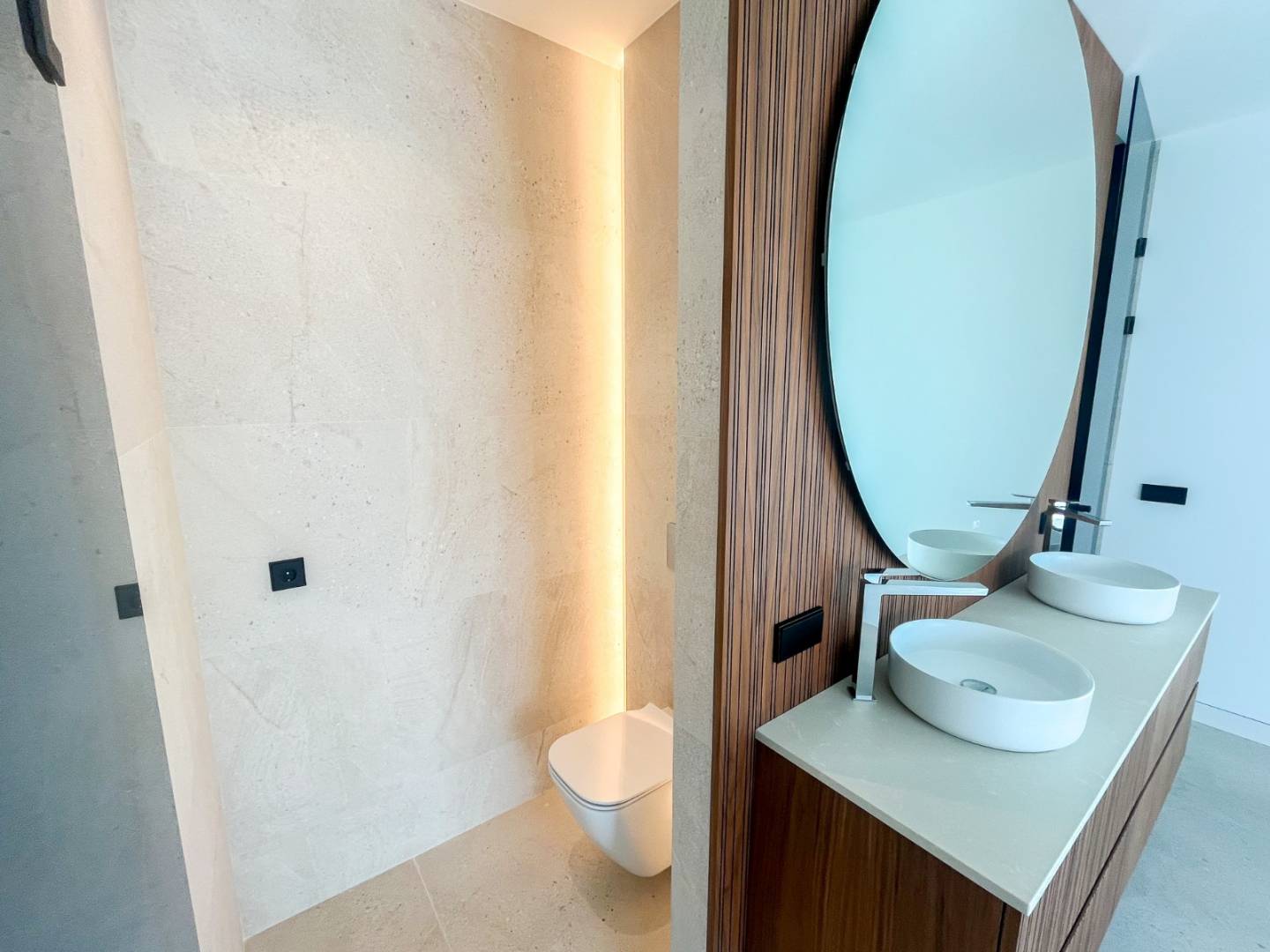 This villa has been designed for enjoyment without ever leaving home. A private cinema invites immersive viewing sessions in ultimate comfort; the entertainment room hosts social and gaming moments in a stylish setting; and the Spa & Wellness Room with jacuzzi offers a serene and exclusive wellness routine. Outside, the Mediterranean landscaping frames a 15 x 5 m heated and covered swimming pool, creating the perfect setting for tranquil sunrises and memorable evenings under the Mediterranean sky.