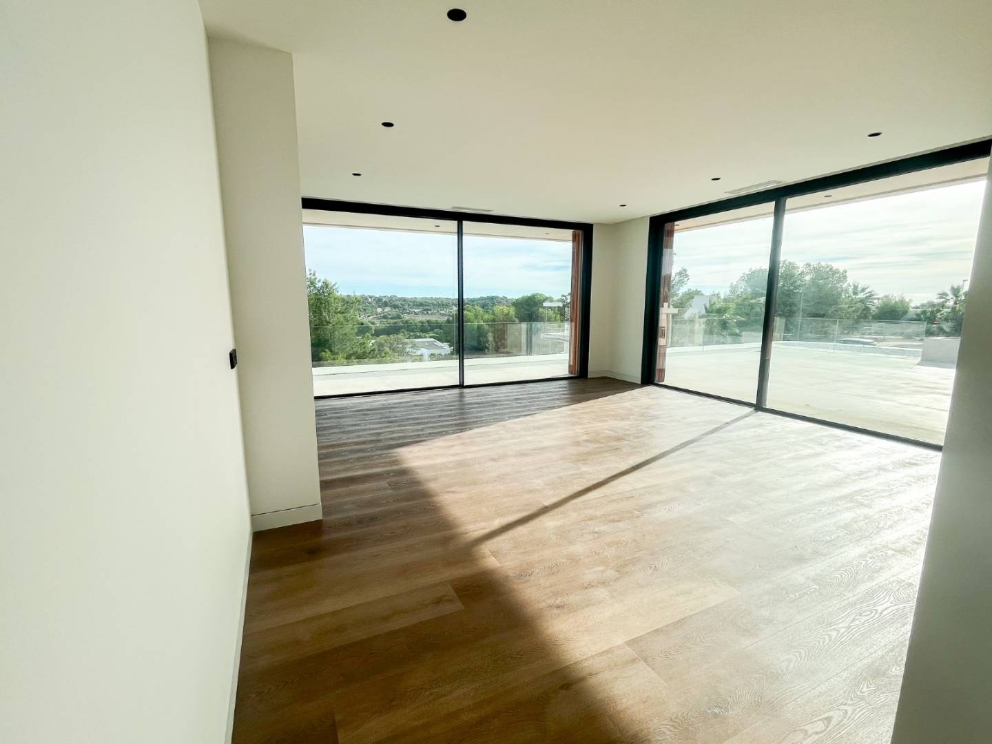 With approximately 876 m² of living space and a 3,600 m² plot , the villa stands out for its organic lines and refined materials, combining treated natural wood, stone, and Mediterranean white . The architecture opens up to the landscape through large glazed surfaces and a carefully considered indoor-outdoor flow, allowing light, the garden, and the golf course to become integral parts of daily life. The overall feeling is one of calm, spaciousness, and genuine privacy.