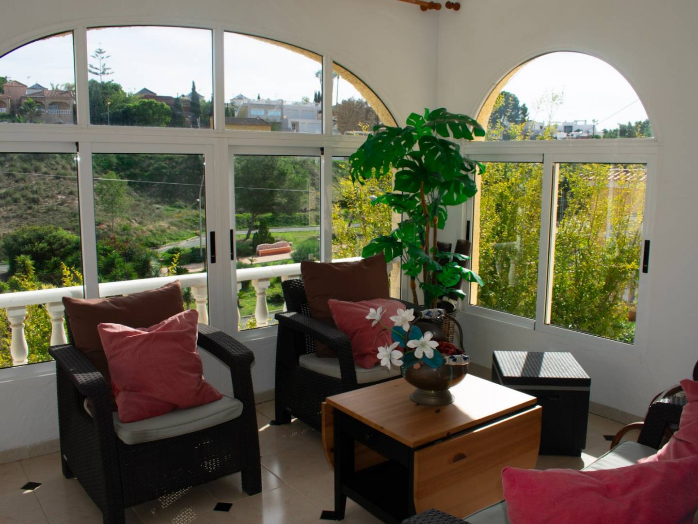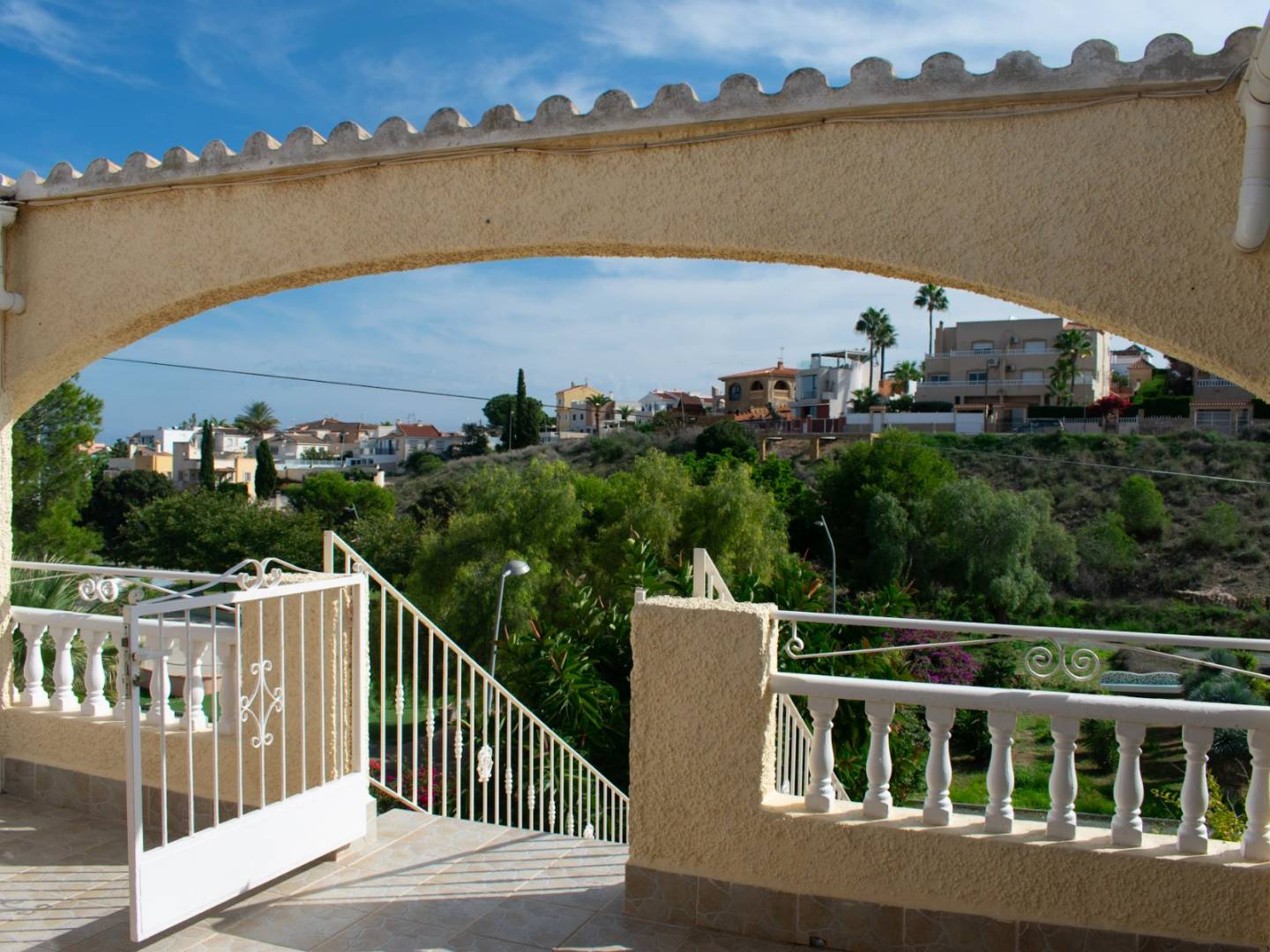 The villa is distinguished by its private pool , seven spacious terraces , and charming gardens with fruit trees, palm trees, flowers, and a vineyard , creating an environment of serenity and privacy. At the top, a large solarium with a barbecue area , offering distant views of the Torrevieja salt flats , provides the perfect space to relax and enjoy the Costa Blanca climate.