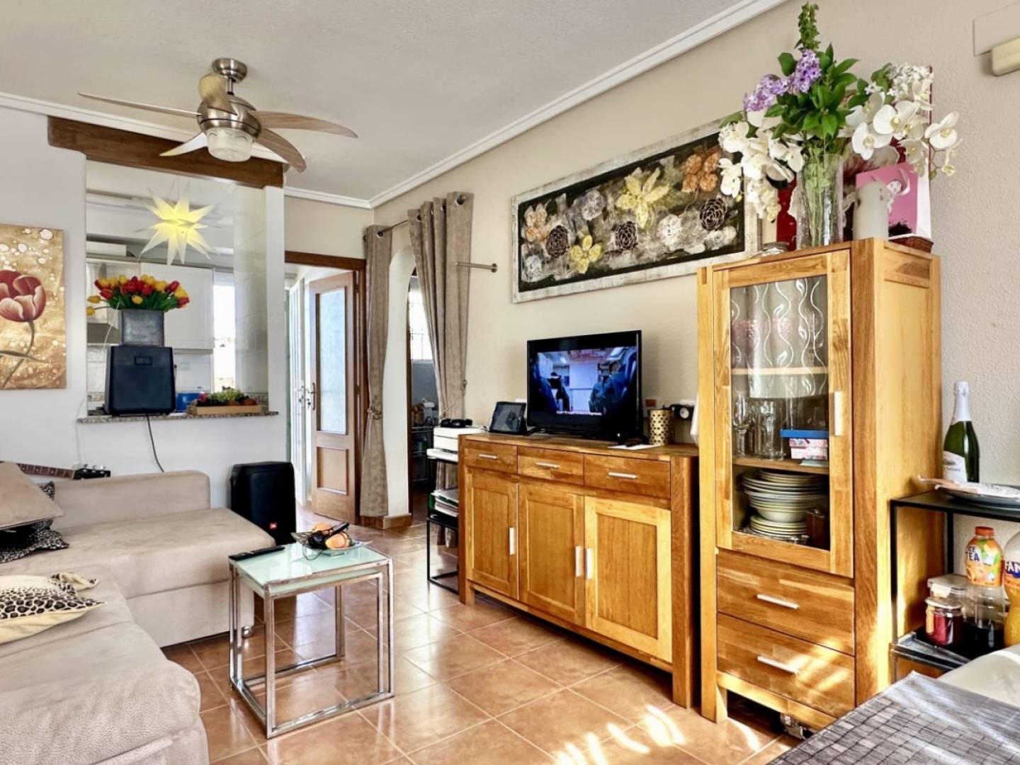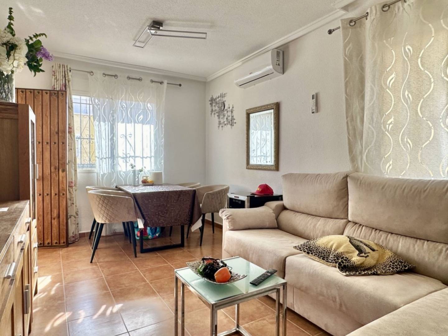 Discover this lovely semi-detached house located in the peaceful and sought-after area of Los Altos, Orihuela Costa.Built in 1997 on a 131 m² plot, the home is in excellent condition and offers everything for comfortable Mediterranean living. It features 3 bedrooms, 2 bathrooms, a bright living and dining area, and a fully equipped kitchen.Enjoy plenty of outdoor space with a sunny terrace, balcony, and a private solarium — perfect for relaxing or entertaining guests. The property is sold fully furnished and includes air conditioning.Situated in a well-maintained residential complex with a beautiful community swimming pool and green areas, within walking distance to restaurants, supermarkets, and only a short drive to the beaches of Playa Flamenca and La Zenia. Ideal as a permanent home, holiday retreat, or rental investment.