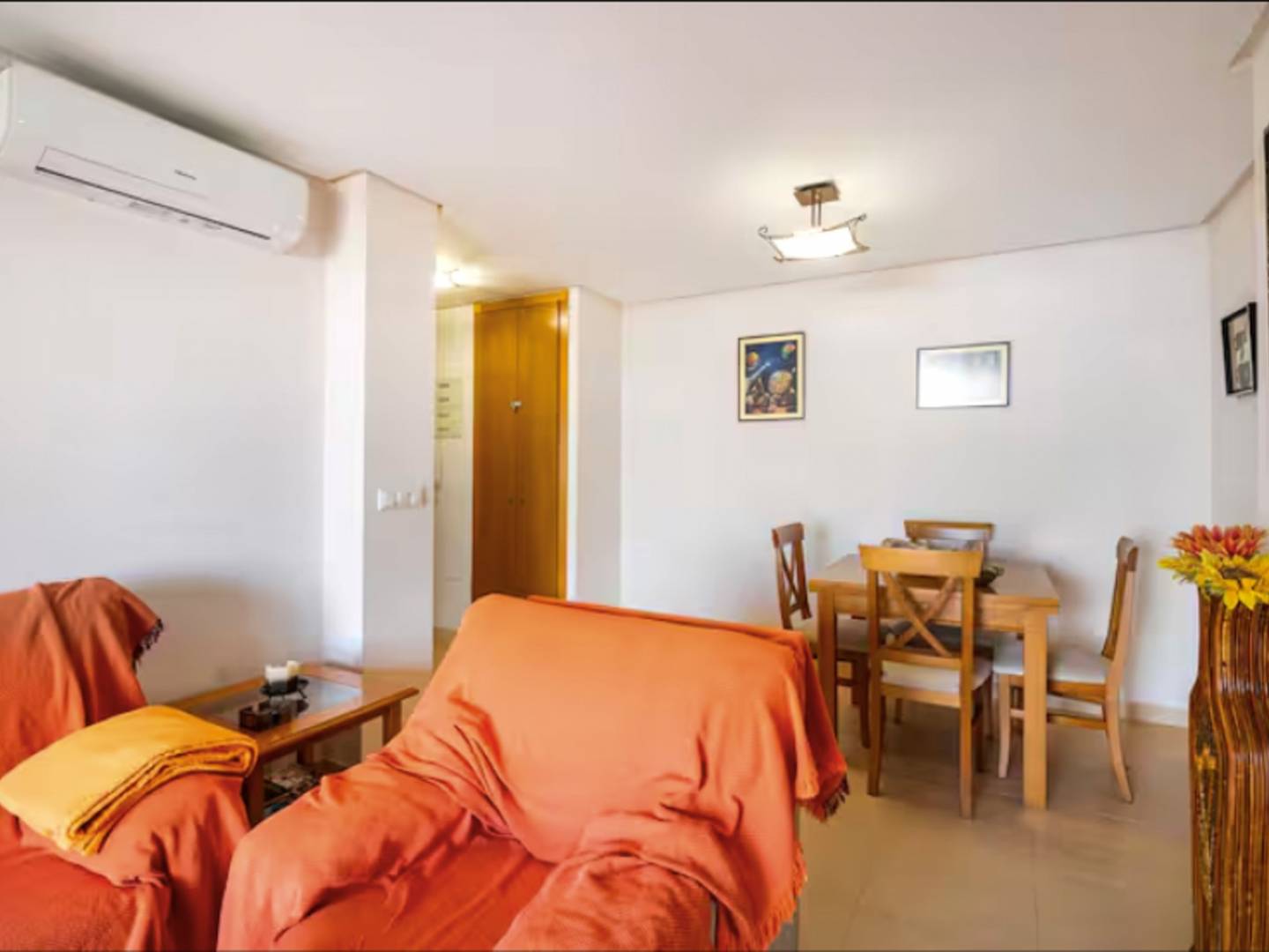 The property features two exterior bedrooms , a full bathroom , a fully equipped kitchen, and an open-plan living room with direct access to the terrace. It also includes air conditioning , built-in wardrobes , a spacious parking space , and a large storage room , providing extra convenience for both residential and holiday use.