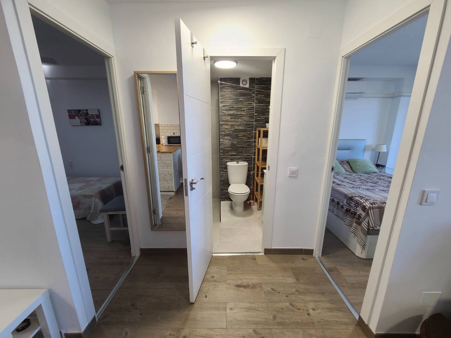 The apartment is in excellent condition , equipped with air conditioning in every room, individual heating , a Smart TV , and a washing machine. It is located on the second floor of a building with an elevator and accessible entrances for people with reduced mobility. Free street parking is also available directly in front of the building.