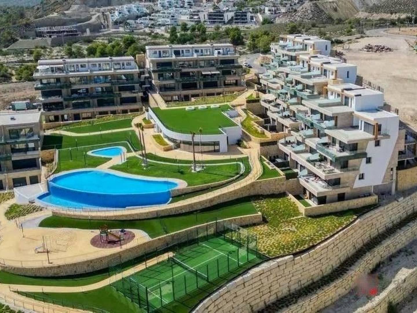 This stunning residential complex offers everything you could wish for: two infinity pools , a heated indoor pool , a children's play area , parks , paddle tennis courts , and expansive green spaces perfect for strolling or gathering at sunset. For work or relaxation, there's a modern coworking space and inviting lounge areas. Well-being is guaranteed with a complete spa area, including a Finnish sauna , jacuzzi , and a fully equipped gym .
