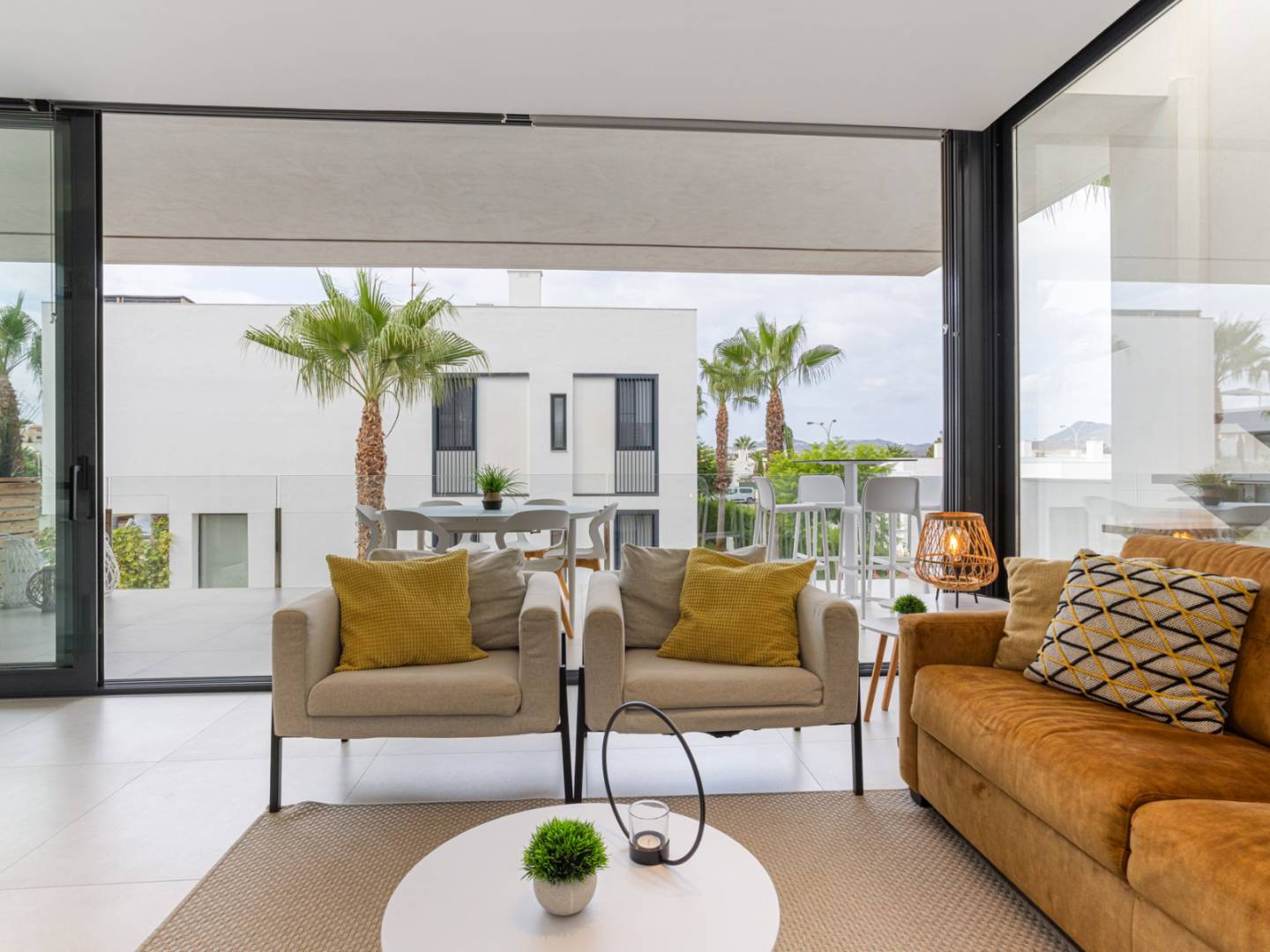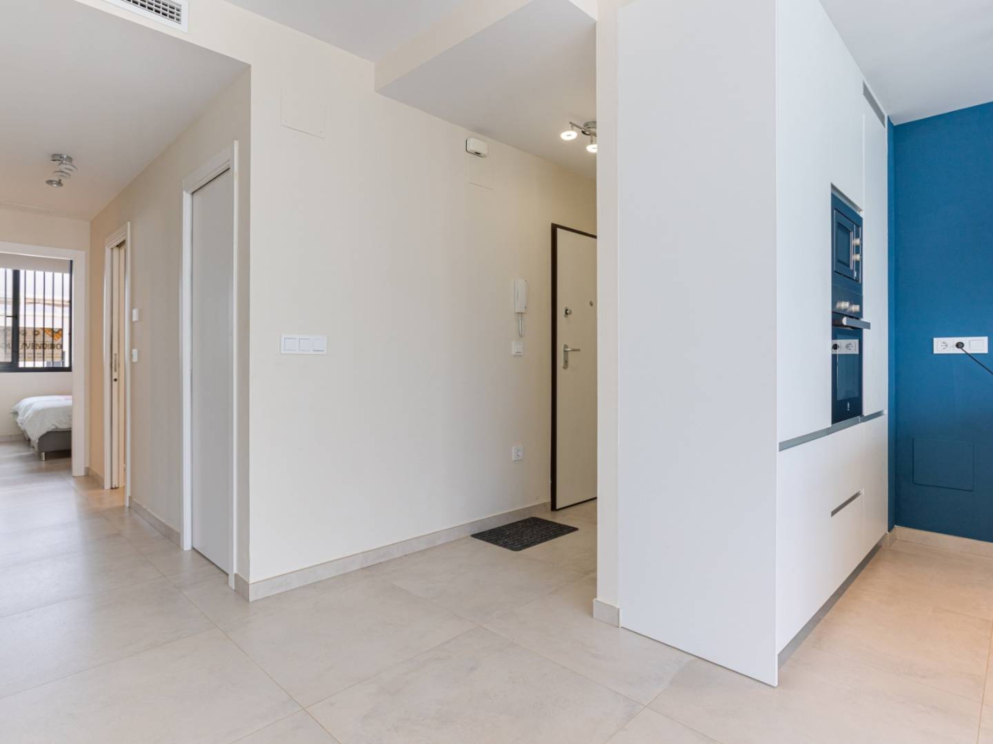 The property offers three spacious bedrooms with built-in wardrobes , perfect for families or those needing extra space for remote work. It also features two full bathrooms , one of which is en-suite, both designed with modern, high-quality materials. The bright living-dining room opens onto a private terrace , an ideal spot to relax and enjoy the Mediterranean climate year-round.