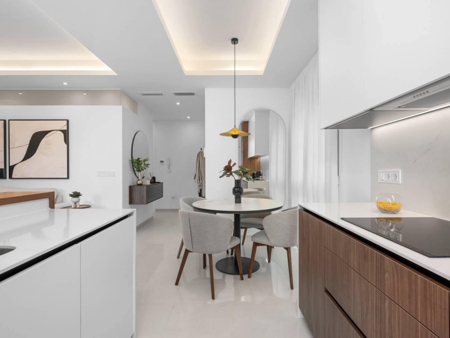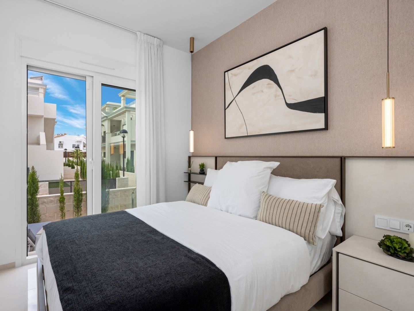 This modern, newly built apartment, located in a prestigious residential complex in Ciudad Quesada , perfectly combines elegance, comfort, and contemporary design. The property features two double bedrooms , one with an en-suite bathroom , and a second full bathroom , offering a functional and welcoming layout. Its modern, open-plan living room , connected to the fully equipped kitchen with high-end appliances , flows seamlessly onto the main terrace , flooding the space with natural light and creating a warm and sophisticated atmosphere.