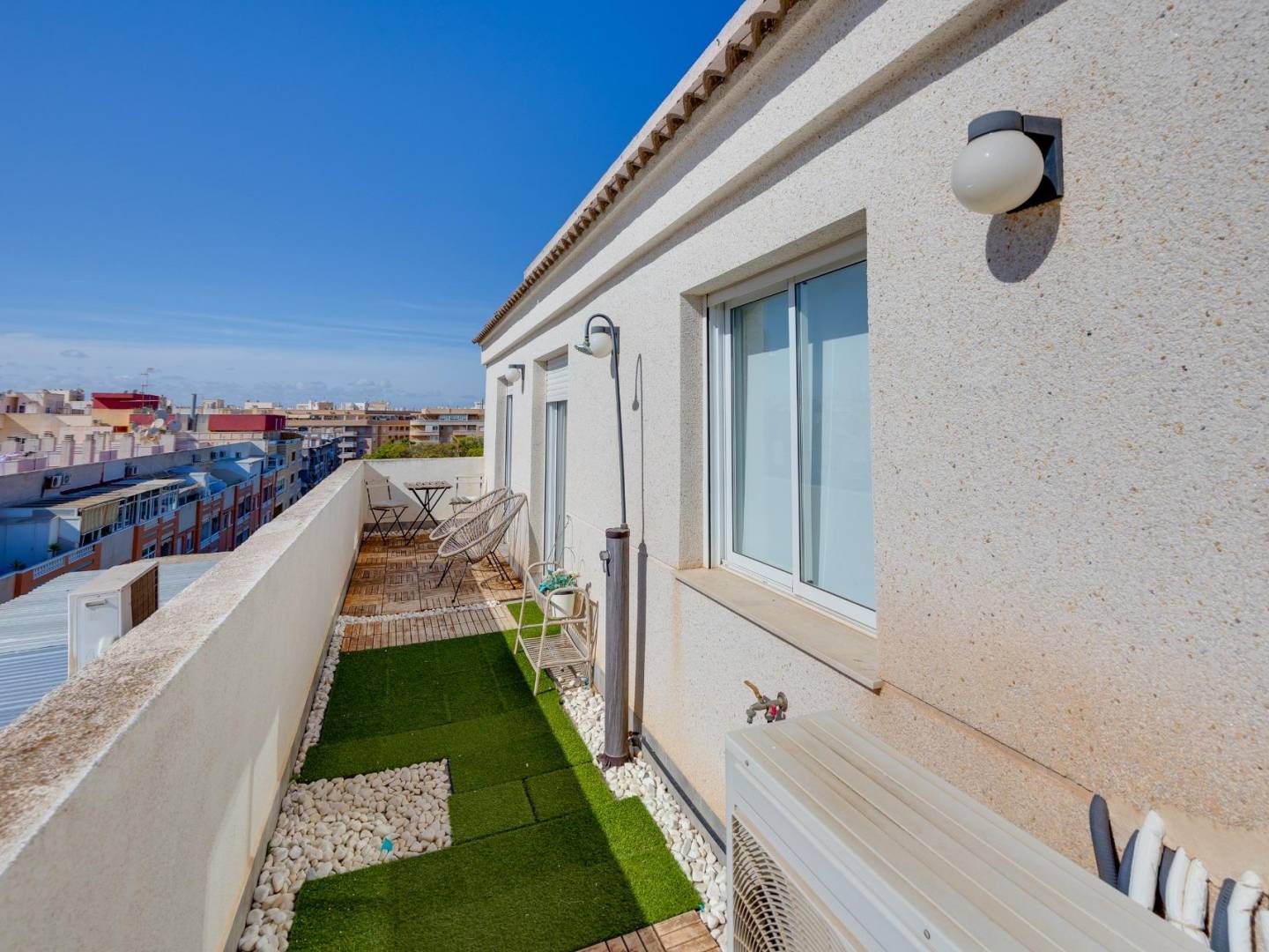 Discover this fantastic duplex penthouse located right in the center of Torrevieja, only a short stroll away (just 10 minutes) from the beautiful Playa del Cura! This unique property features an exceptional design and layout that you'll absolutely love. The lower floor includes a modern bathroom, a fully equipped open kitchen with dining area, and a lovely terrace perfect for soaking up afternoon sun . Upstairs boasts three spacious bedrooms, another chic bathroom, and an inviting living room leading to another sunny terrace where you can enjoy daylight all day long . Additionally, there is a laundry area with independent access to storage on the terrace . With all amenities within walking distance due to its prime location in central Torrevieja ; this property is ideal for both year-round living or vibrant summer vacations a highly sought-after neighborhood awaits your arrival!~