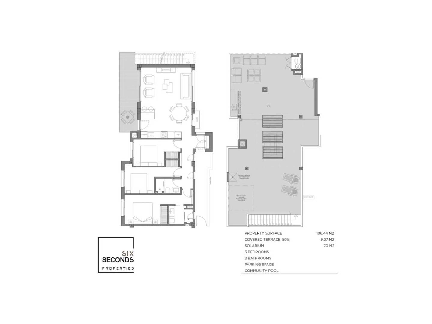 Experience the authentic Mediterranean lifestyle from the heights of these fantastic penthouses with private solariums in this contemporary, Mediterranean-inspired residential complex located in Los Alcázares . These homes stand out for their spacious interiors , carefully designed to maximize natural light , and their spectacular private solariums , ideal for sunbathing , al fresco dining , or enjoying moments of relaxation in complete privacy . The penthouses feature two or three bedrooms , two full bathrooms , a bright living-dining room , and a modern kitchen , all designed to offer comfort, elegance, and functionality . The gated and secure complex boasts landscaped common areas , a communal swimming pool , and dedicated relaxation spaces, creating a tranquil and harmonious environment. Located just 10 minutes from the beach and 30 minutes from the airport , with parking spaces available , these penthouses are a perfect option both as a permanent residence and for exclusive getaways or real estate investment on the Costa Cálida .