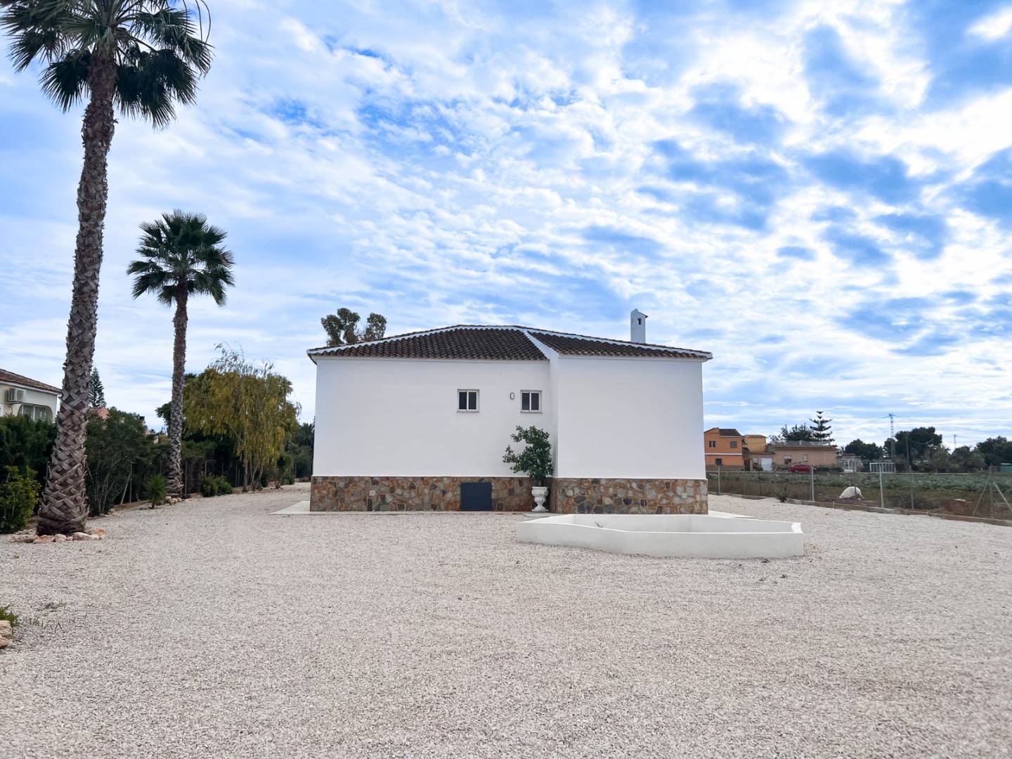 The house extends into a covered porch area , designed as a true extension of the interior , which provides access to the garden and a spectacular 52 m² private swimming pool , equipped with an outdoor shower and a convenient barbecue area. The property sits on a 3,055 m² plot that completely surrounds the house, with various outdoor areas and an unlandscaped garden area , ideal as a blank canvas for designing a bespoke outdoor space. It also features a separate outbuilding that includes a laundry room, an additional guest bedroom with an en-suite bathroom, and a garage , adding versatility and value. With a total of 219 m² of built area between the main house and outbuildings, the property is situated in a peaceful setting surrounded by trees and farmland , just a 3-minute drive from Dolores , a town offering all essential services such as restaurants, supermarkets, a health center, and shops , and about 7 minutes from the sea by car – a perfectly balanced combination on the Costa Blanca .