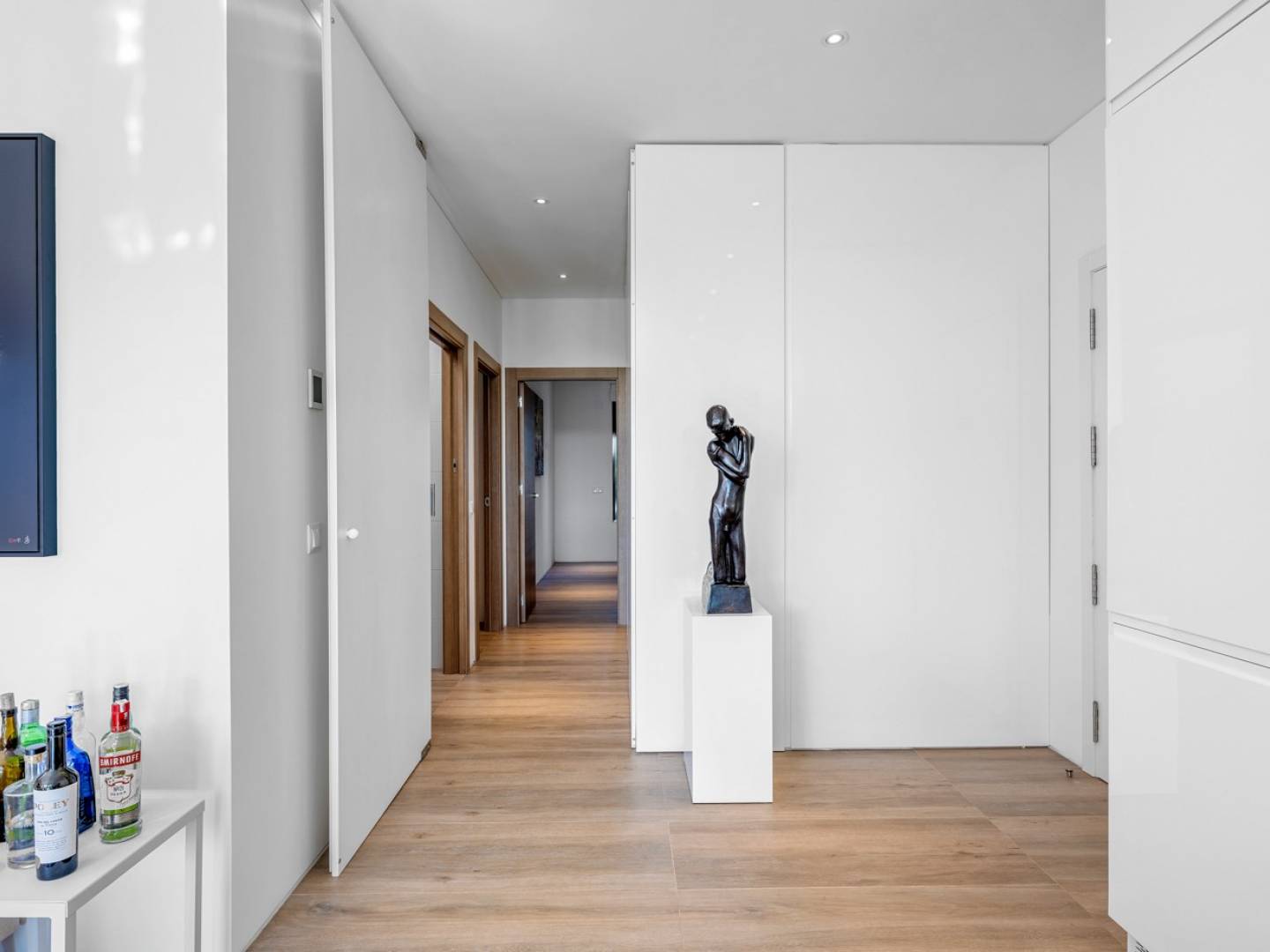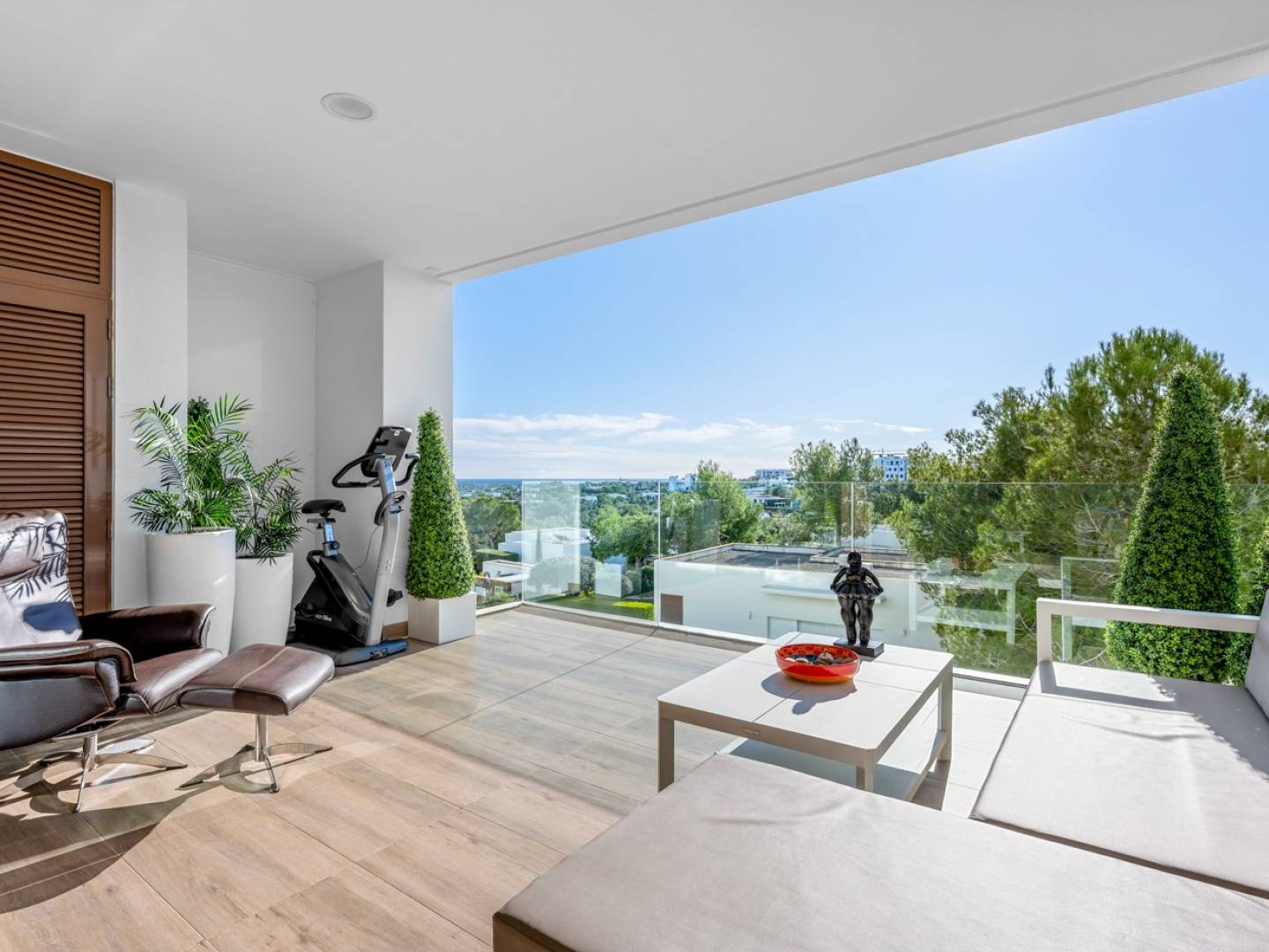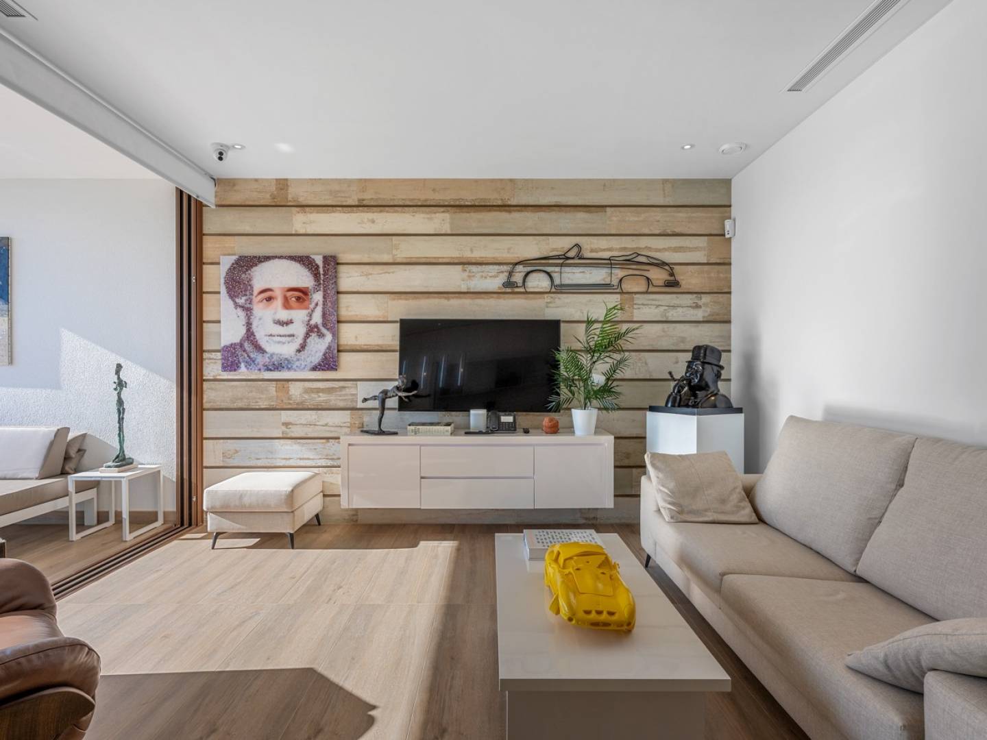 The property features a spacious and bright living room with an open-plan kitchen , designed for comfort and functionality. Large sliding glass doors , seamlessly integrated into the wall, merge the interior and exterior, opening onto a spacious terrace with breathtaking panoramic views of the golf course, the sea, and the communal infinity pool , creating an atmosphere of absolute serenity. Its excellent orientation ensures natural light throughout the day .