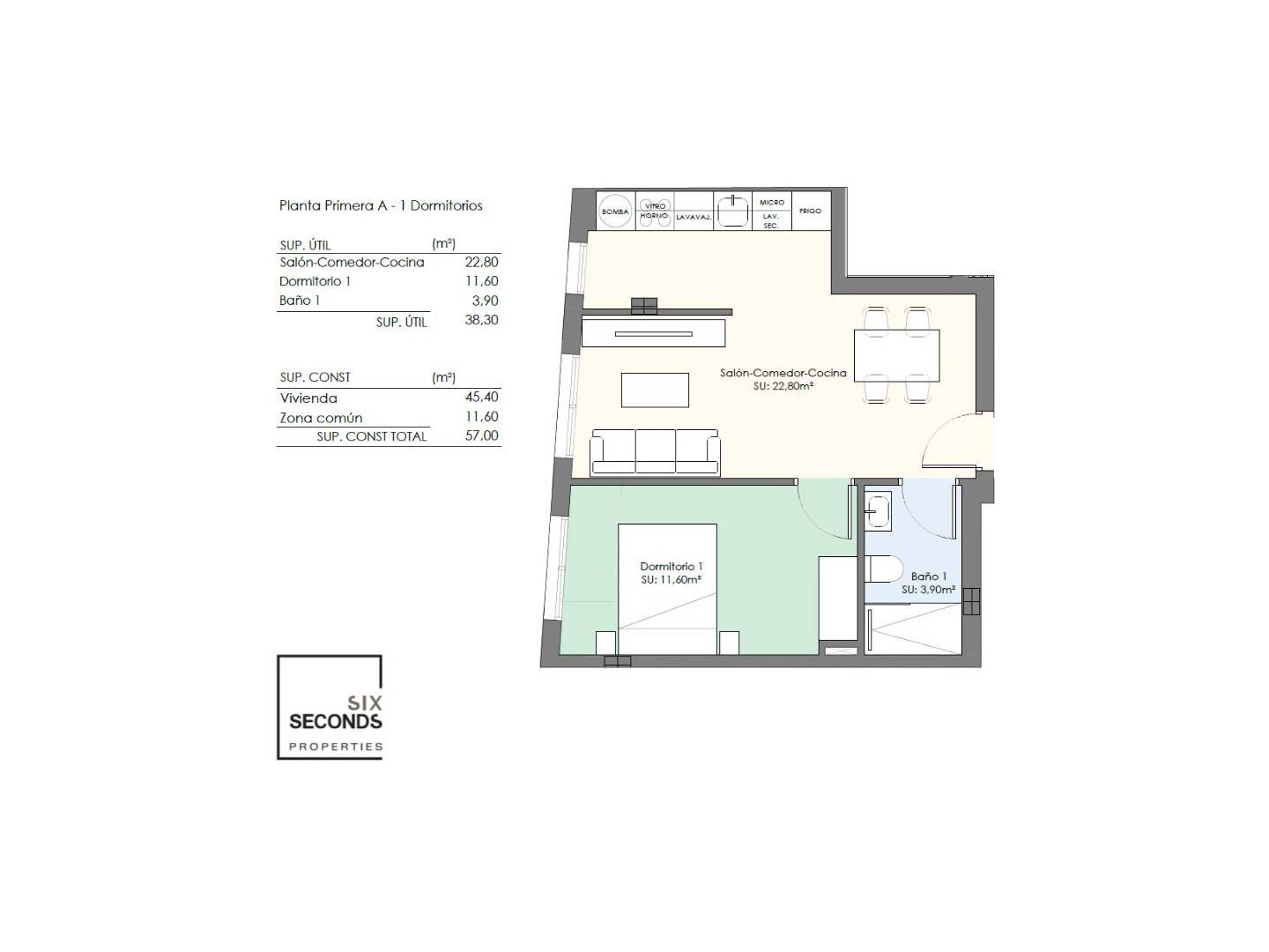 Turnkey apartment in Torrevieja, first floor with one bedroom and one bathroom, fully equipped and ready to move in.