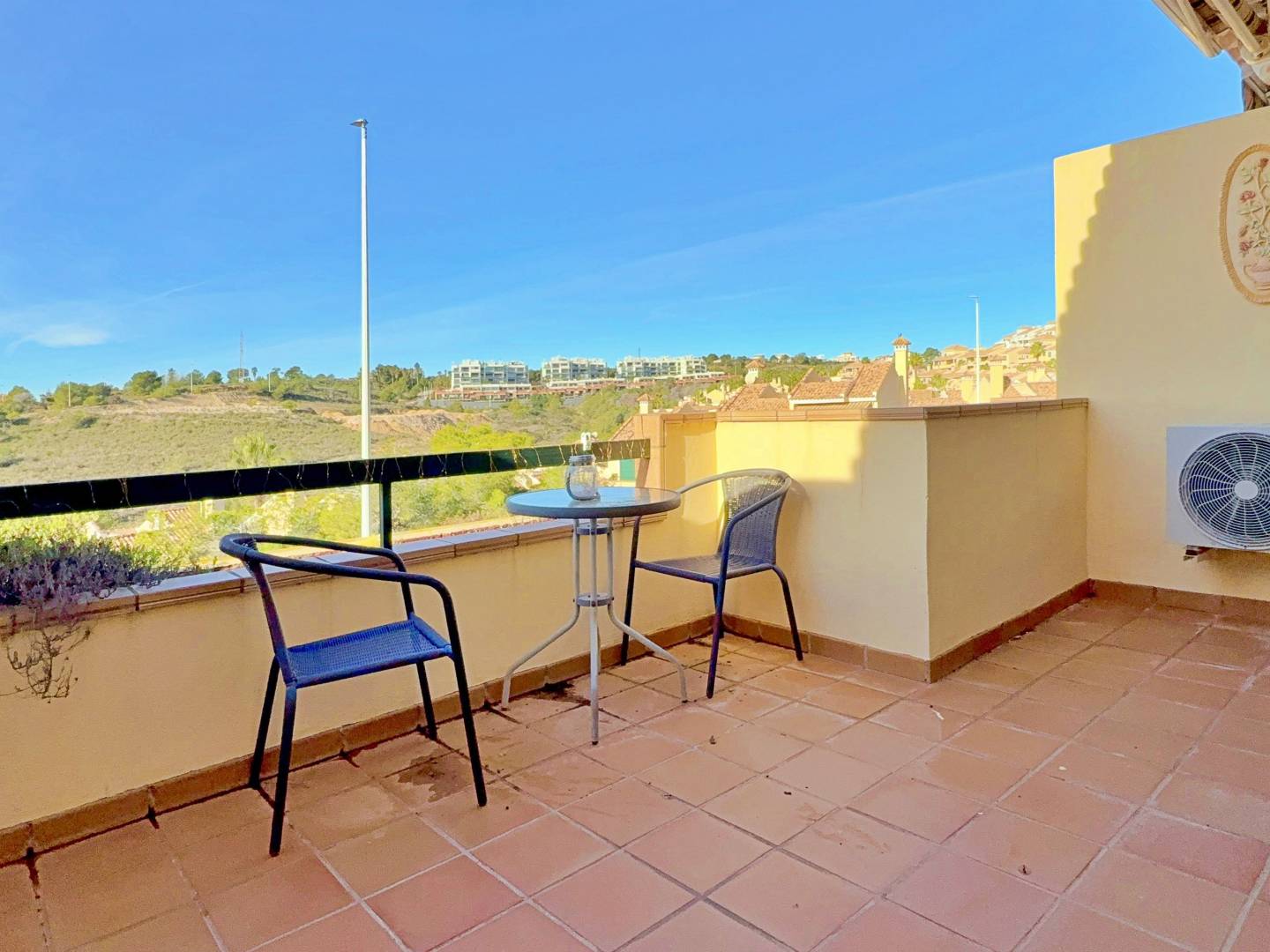 This sunny townhouse in Orihuela Costa is an ideal option for those seeking comfort, natural light, and outdoor space in a peaceful and well-connected setting. The property features two bedrooms and two bathrooms , functionally distributed across 83 m² of living space, complemented by a pleasant 25 m² private garden , several terraces , and a magnificent solarium , perfect for enjoying the Mediterranean climate year-round. Its southwest orientation ensures sunshine for much of the day, bringing warmth and brightness to every room. The property is sold furnished and equipped with air conditioning , ready to move into or to generate rental income from day one. Located in a well-maintained residential complex with a communal swimming pool , it is just 5 km from the beach and 2.5 km from a golf course , making it an excellent choice as a permanent residence , a second home , or a real estate investment on the Costa Blanca.