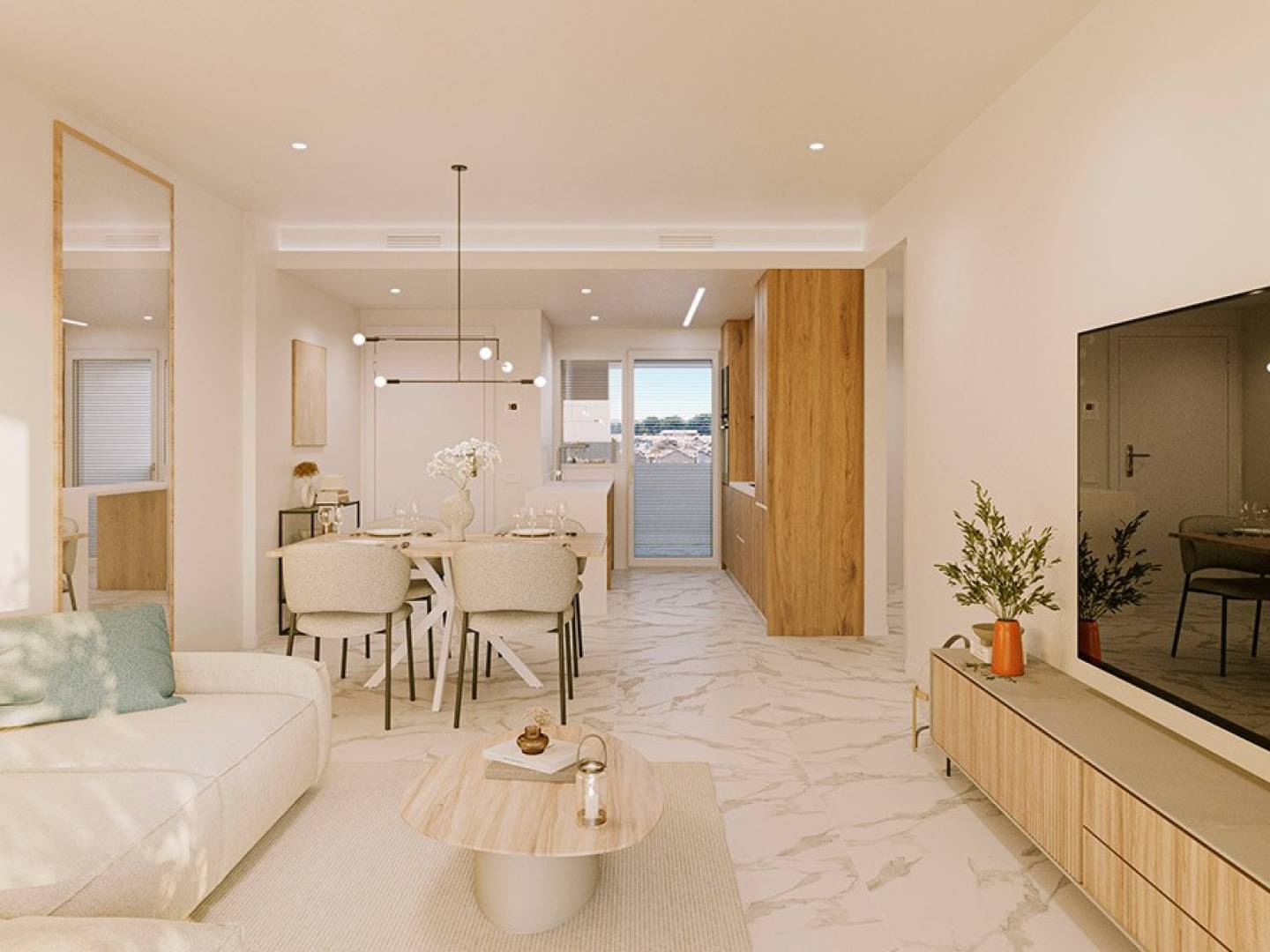 We present a fantastic new development comprising 250 designer homes , designed for those seeking a sophisticated, comfortable lifestyle connected to the natural surroundings. The residential complex offers 2- and 3-bedroom apartments , elegant ground-floor units with private gardens , and spectacular penthouses with solariums , ideal for enjoying the Mediterranean climate year-round.