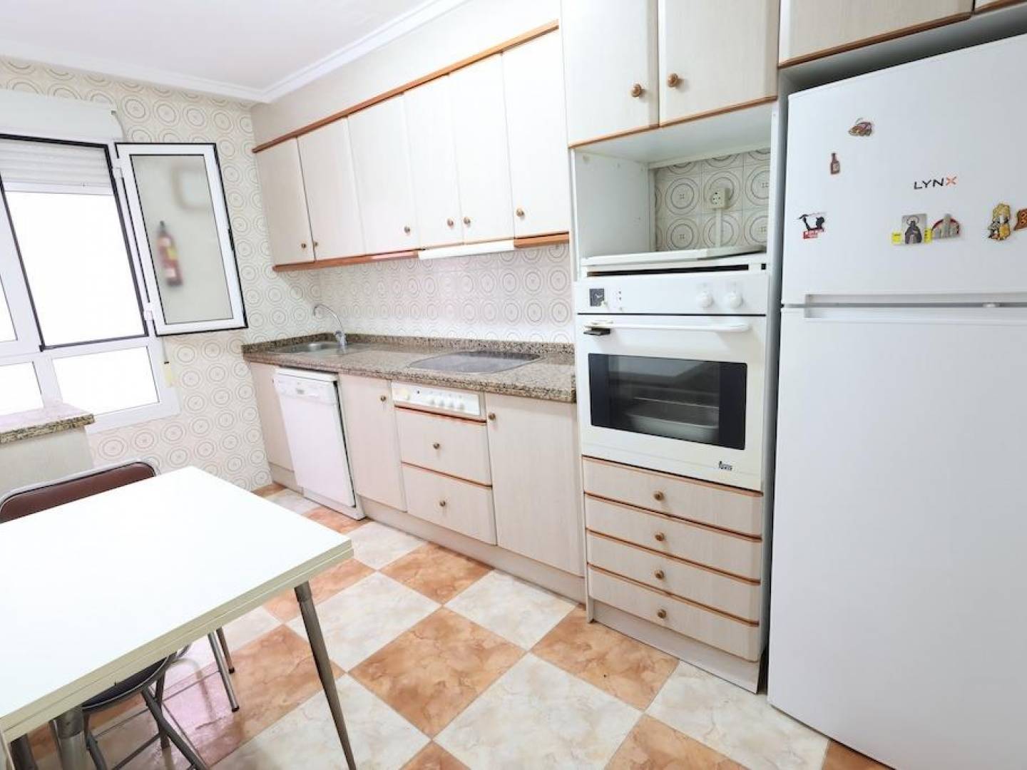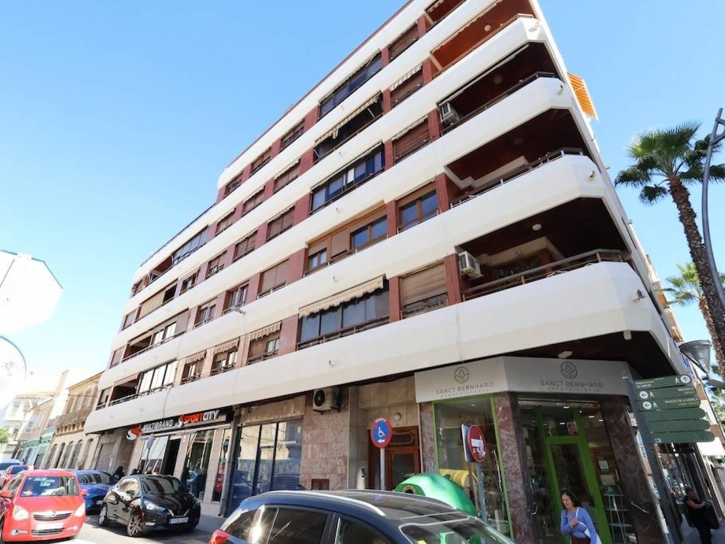 Torrevieja Center Calle Azorín 3rd-floor south-facing apartment (with elevator). 117 m2, 3 bedrooms, 2 bathrooms, large independent kitchen, living-dining room, and terrace. Sold fully furnished and equipped with AC. Side sea views.. . Optional garage available nearby!