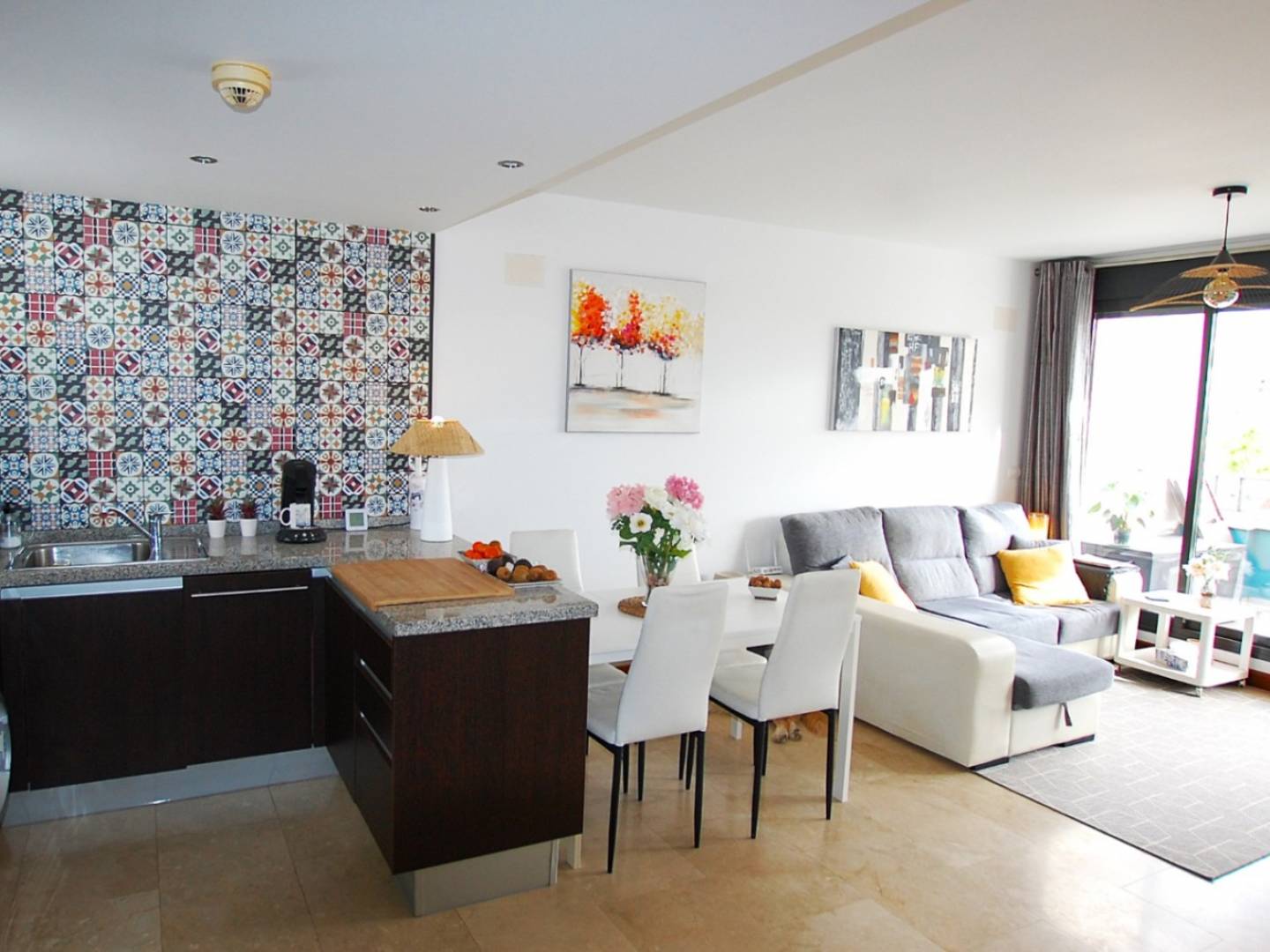 Discover Your Retreat in Campoamor Located in the beautiful city of Orihuela, in the attractive enclave of Campoamor, this modern property is a gem waiting to be discovered. With its contemporary design and features designed for comfort, this home is ideal for those seeking a tranquil and stylish life. Property Details With a generous built area of 95 m², it stands out for its efficient and cozy layout. This charming apartment includes 2 bedrooms and 2 bathrooms, offering the perfect balance between privacy and togetherness. The open-plan kitchen harmoniously connects with the living area, creating an ideal environment to enjoy pleasant moments with family and friends. Terrace and Outdoor Spaces One of the highlights of this property is its splendid 30 m² terrace. This outdoor space is perfect for relaxing, sunbathing, or enjoying al fresco meals, all while taking in the gentle Mediterranean breeze and the pleasant views of the area. Year-Round Comfort The home is equipped with air conditioning and ducted heating, ensuring a pleasant climate at all times. Additionally, the double-glazed windows and security door provide a sense of calm and protection, while its east orientation allows natural light to flood every corner of the home during the mornings. Common Areas and Services Residents of this community will enjoy a community pool, ideal for cooling off on hot summer days and getting to know their neighbors. Easy and quick access to main communication routes ensures a comfortable lifestyle, facilitating trips to nearby beaches and points of interest in the province of Alicante. Additional Amenities This property offers not just a home, but also a living experience. With an included parking space and fully furnished, every detail is designed for your comfort. Moreover, its modern construction gives it a fresh and attractive air, ensuring you have a place to enjoy every moment. If you are looking for a home that combines comfort, modernity, and the beauty of the natural surroundings of Campoamor, this property is the perfect choice. Contact us to learn more about this magnificent opportunity. Your new home is waiting for you!