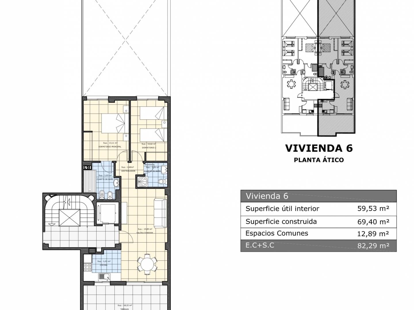 Penthouse with private parking space. Penthouse of 82.29m² that is distributed in a spacious living room attached to an open kitchen and access to a terrace of 18.72m², two double bedrooms, one of them en suite with bathroom, and a separate bathroom.