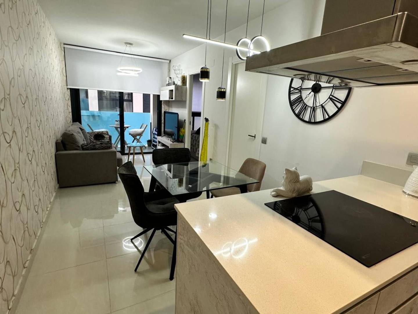 This elegant, modern 2-bedroom, 1-bathroom apartment , located in a contemporary building completed in 2022 , is in excellent condition , ready to move into or start generating income from day one. The property offers a spacious and bright living room with a warm and inviting atmosphere, seamlessly connected to a fully equipped open-plan kitchen designed to maximize space and functionality. Both bedrooms feature built-in wardrobes , providing organization and convenience, while the bathroom stands out for its modern and thoughtful design. Adjacent to the kitchen is a separate utility room with a boiler and additional storage space – a rare added value. The property boasts a pleasant terrace , ideal for enjoying the Mediterranean climate year-round. Its strategic location , just a few meters from Playa del Cura and Cala de la Palangre , and a short walk from shops, restaurants, supermarkets, the center of Torrevieja, and the main bus station , makes it an excellent option both as a permanent residence and as an investment for holiday or long-term rentals .