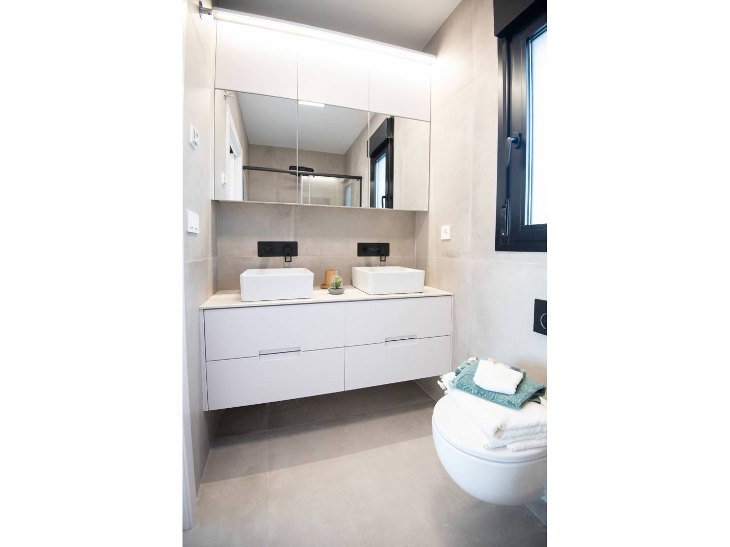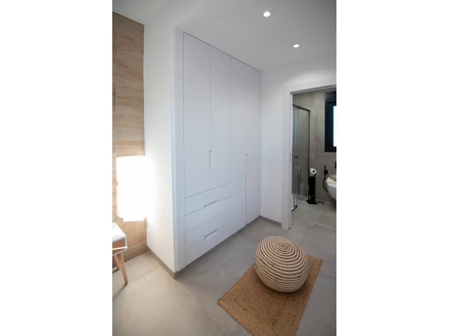 Fantastic Villa for sale in Santiago de la Ribera, San Javier, Murcia. Just 900m from the best beaches in the area, which in total have more than 4 km of route, certified with the Q for tourist quality. San Javier is located in the northern part of La Manga del Mar Menor, and is characterized, like other cities in the area, for being fishing. This means that the seafood you will find in shops, fishmongers and restaurants will be of the highest quality. In addition to the gastronomy, this area is known for the calm waters that allow for a variety of water sports, such as snorkeling, diving, kayaking and much more. Property located close to all the basic services that a city can offer, such as pharmacies, shops, supermarkets, schools, bars, restaurants, etc. And close to San Javier International Airport. Two-storey villa with private uncovered parking space, a large swimming pool, beautiful garden areas and solarium on the covered floor. Ground floor with a spacious living room attached to an open plan kitchen with breakfast bar on the peninsula, a double bedroom with built-in wardrobe, a separate bathroom and laundry area. Upper floor with two double bedrooms, both en suite with bathroom and dressing room, both with access to a large terrace of 28.00m². Covered floor with a solarium of 48.60m² where you can install your summer kitchen with barbecue and shower.