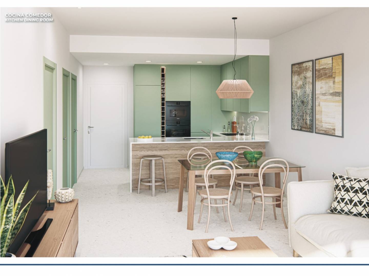 Ground floor apartment of 71.40m² that are distributed in a spacious living room attached to a beautiful open plan kitchen with breakfast bar on the peninsula, access to a large terrace of 38.25m² with incredible views of the GOLF COURSE, two double bedrooms with fitted wardrobes, one of them a suite with an en-suite bathroom and a separate bathroom.