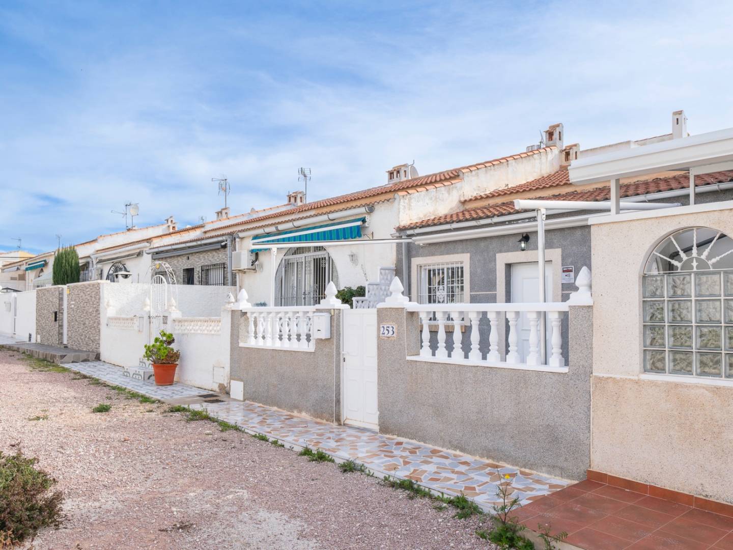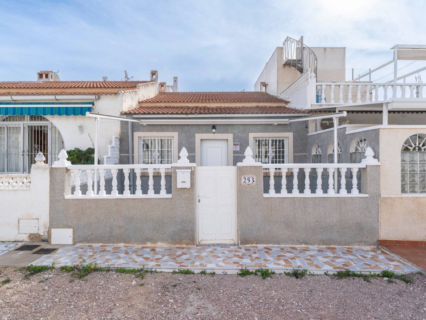 Renovated ground-floor bungalow located in a quiet and established residential area of El Chaparral San Luis, Torrevieja, with easy access to shops, restaurants and all services. Close to La Mata Natural Park and approximately 2 km from the beach. The property offers 56 m² built on an 81 m² plot, all on one level. It is renovated and freshly painted, ready to move in. It features a living-dining area with open-plan kitchen, two bedrooms and one bathroom. Outside, there is a private front terrace of 25 m², fully tiled and equipped with an awning, accessed from a quiet pedestrian street.