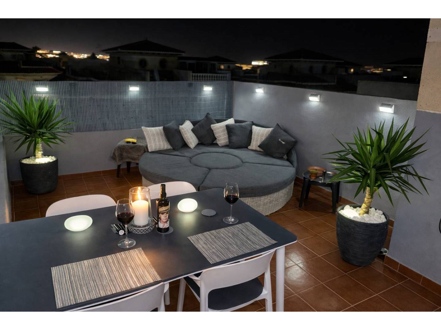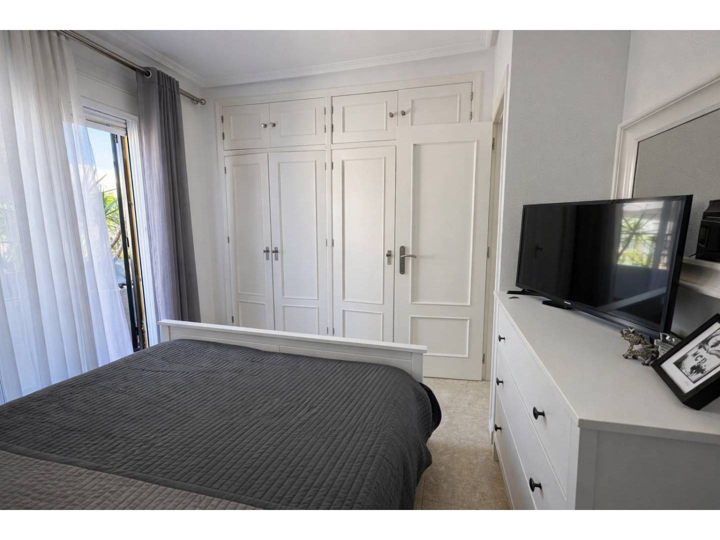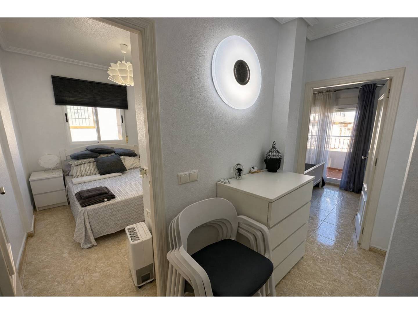 Discover this fantastic , fully renovated quadruple townhouse in La Zenia , designed to offer the perfect balance of modern comfort , Mediterranean style , and a prime location on the Orihuela Costa . The property features two double bedrooms , two modern bathrooms , and approximately 86 m² of living space, distributed across bright and functional rooms. On the main floor, you'll find an elegant open-plan living and dining area , a fully equipped modern kitchen , a decorative fireplace, and the option to create a third bedroom. Upstairs, there are two spacious bedrooms, one with a private terrace , and a family bathroom with a shower and double sink. The property also boasts a spectacular private solarium , ideal for sunbathing, barbecues, or al fresco dining, as well as a covered front terrace , a back patio with a garden and orange trees , a storage room , and access to a communal swimming pool within a well-maintained and secure gated community. Located just a 15-minute walk from La Zenia Boulevard and very close to Blue Flag beaches , golf courses, and all amenities, this property is ideal as a permanent residence , a holiday home , or a high-yield real estate investment on the Costa Blanca . Ready to move in , built in 2003, and with excellent potential for appreciation.