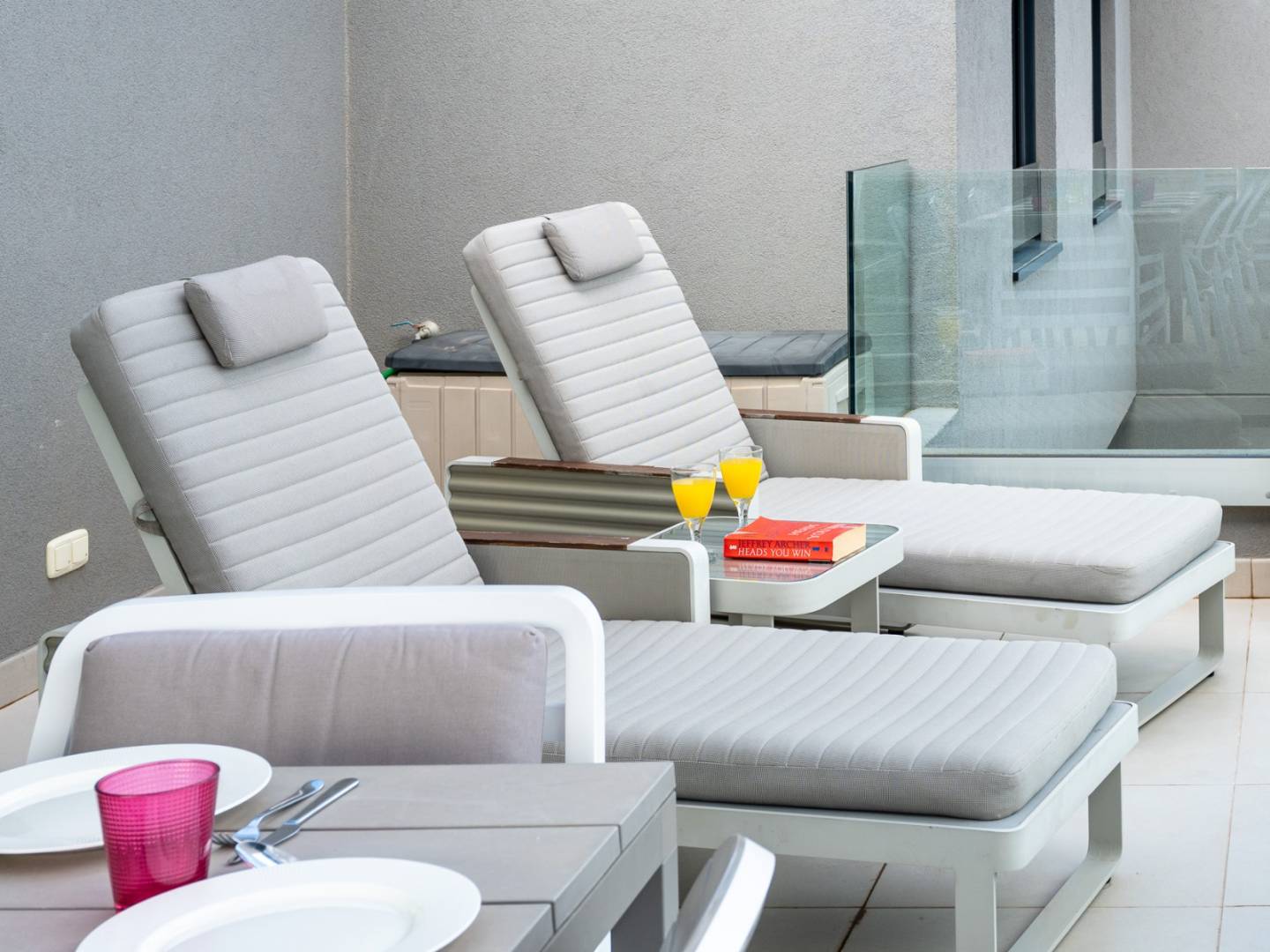 The residential complex's communal areas further enhance the experience: an Olympic-size swimming pool , a heated pool for the colder months , a jacuzzi , a paddle tennis court , children's play areas , and extensive landscaped gardens. As a unique service, the complex even features a stand for the Nautilus Punta Prima restaurant , from which guests can order food served directly to the pool area, providing a level of convenience befitting a five-star resort.
