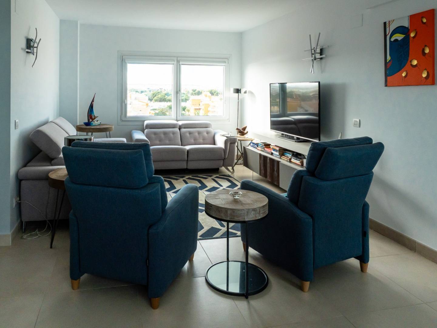 From its spectacular 33 m² terrace , equipped with a retractable bioclimatic system , you can enjoy uninterrupted, frontal views of the Mediterranean Sea , creating a unique sensation comparable to being aboard a private yacht suspended above the blue waters. The living room, seamlessly connected to the terrace , becomes a large panoramic space where interior and exterior blend with absolute naturalness. Furthermore, the living room features a south-facing window , allowing you to contemplate beautiful sunsets and bathing the space in a warm, enveloping light at the end of the day.