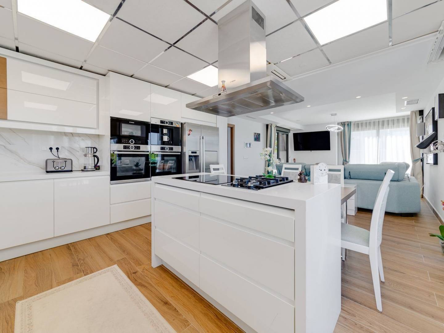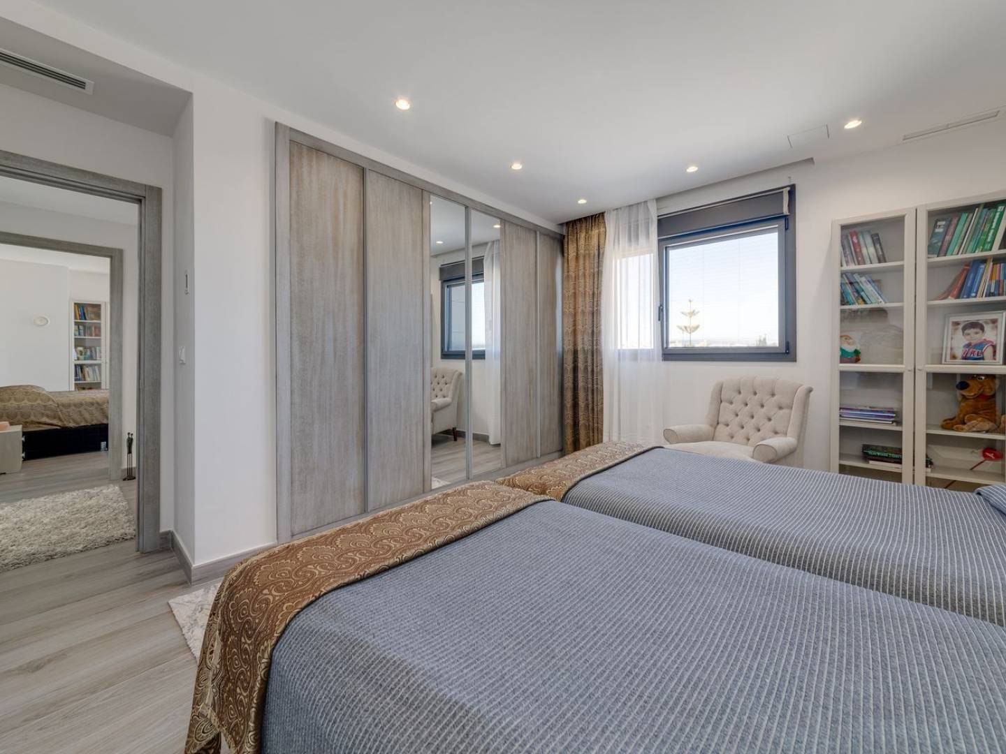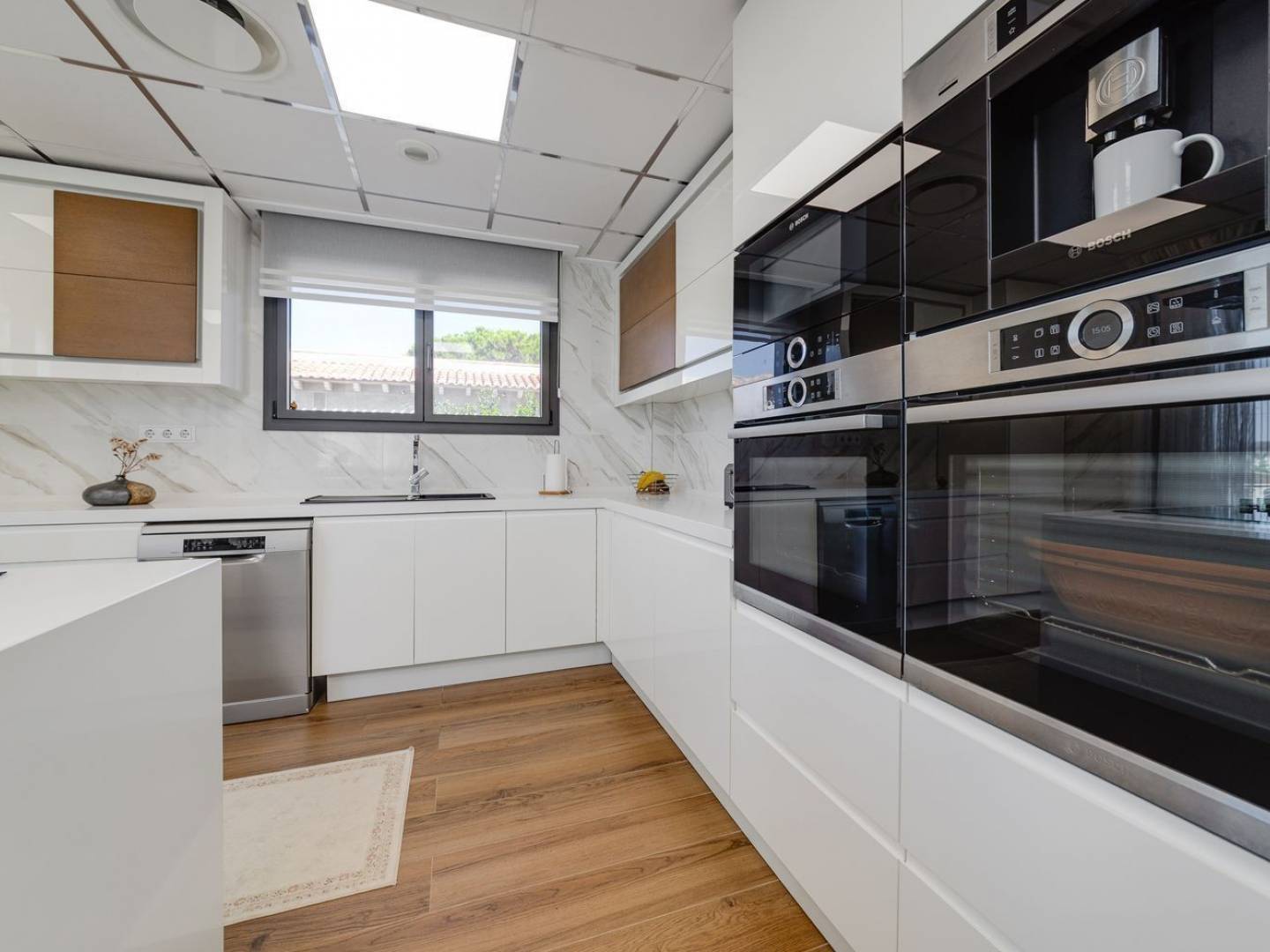 Outside, the property impresses with its designer private pool with a waterfall , spacious terraces , and a chill-out porch next to the pool and main entrance , creating an elegant and comfortable setting to enjoy the day or sunset. Its location, just minutes from La Zenia Boulevard and the beach, makes it an ideal choice as a permanent residence, a second home, or a high-end investment .