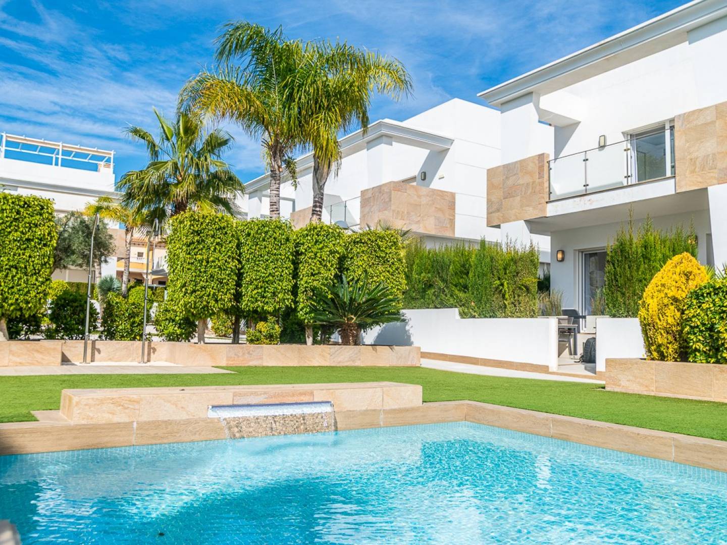 Exclusive Villa in Ciudad Quesada Modern Living in a Prime Location Im pleased to present this exceptional semi-detached villa located in the highly sought-after Euromarina complex, right in the heart of Ciudad Quesada. Built in 2019, this property combines contemporary design, high-quality finishes, and the relaxed Mediterranean lifestyle that makes the Costa Blanca so desirable. Designed for Comfort and Easy Living With 134 m² of built space, the layout has been thoughtfully planned to offer both comfort and practicality ideal as a permanent home, a holiday getaway, or an investment. The property features: Three spacious bedrooms, all bright and well-proportioned with excellent storage Three modern bathrooms, including a stylish en-suite A bright and welcoming living area, perfect for both relaxing and entertaining A sleek open-plan kitchen, fully equipped and designed with both functionality and elegance in mind A generous rooftop terrace ideal for enjoying the Mediterranean sun, outdoor dining, and open views Central air conditioning throughout for year-round comfort Outdoor Space & Community Amenities The property benefits from beautifully maintained communal areas that truly enhance the living experience: Landscaped gardens and green zones A large communal swimming pool with outdoor showers Private parking on the plot Ample storage space both inside and outside the home Location That Offers Everything Ciudad Quesada remains one of the most desirable areas on the Costa Blanca thanks to its vibrant atmosphere and excellent infrastructure. Shops, restaurants, cafés, and medical facilities are all within walking distance. Stunning beaches and renowned golf courses are just a short drive away, while Alicante Airport can be reached in approximately 40 minutes. This property offers the perfect balance of modern comfort, outdoor living, and prime location. For more information or to arrange a viewing, feel free to get in touch,this could be exactly what youve been looking for