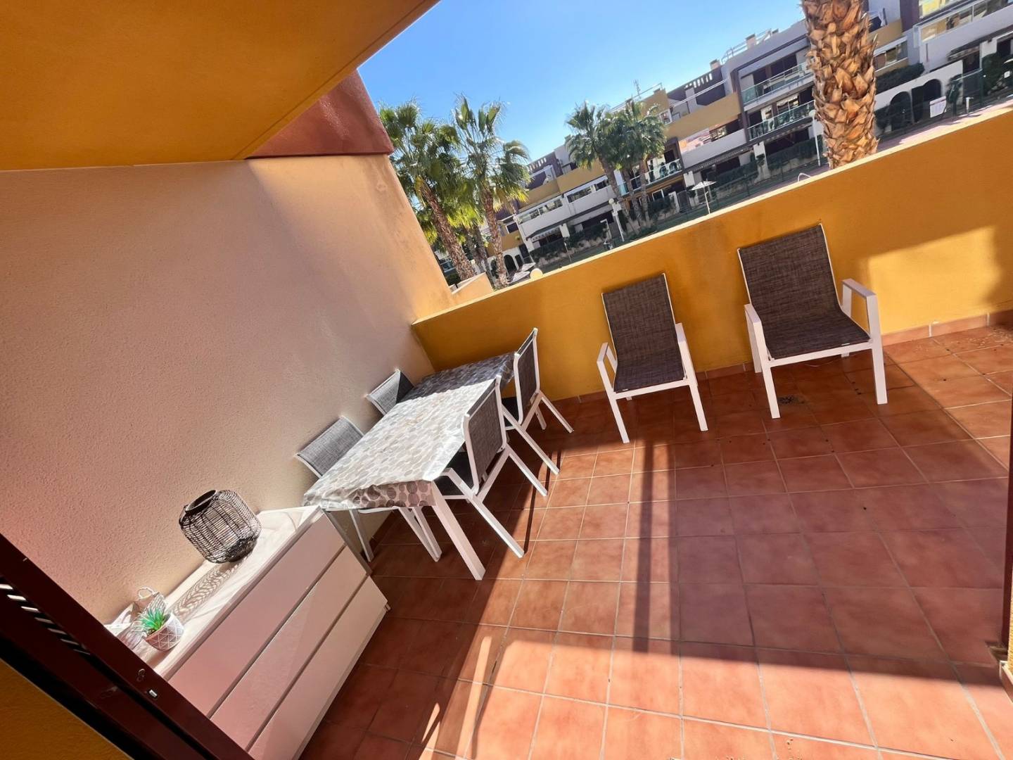 Discover this welcoming apartment in Orihuela Costa , located in one of the most sought-after areas of the Costa Blanca , ideal both as a profitable investment and for year-round enjoyment. The property offers two comfortable bedrooms and a full bathroom , distributed in a bright and airy space thanks to its excellent south-facing orientation , which guarantees natural light throughout the day. The main living room connects to a fully equipped kitchen , creating a functional and inviting atmosphere in excellent condition . Situated in a gated and secure complex , the property features an elevator , air conditioning , central heating , a private parking space , and a separate laundry room , providing convenience and practicality. You can enjoy a magnificent communal swimming pool and gardens in a well-maintained and exclusive setting. Its prime location, close to the beach , in a commercial area , and with all amenities within walking distance , makes this property an exceptional opportunity for those seeking a high quality of life by the sea. A property that combines security, profitability, and Mediterranean style in one of the most desirable areas of the Alicante coast.