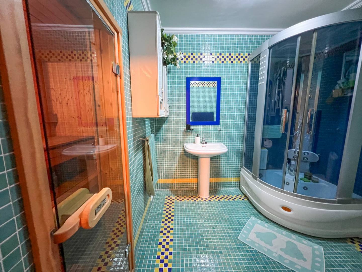 The lower level comprises a living room, separate kitchen, full bathroom with sauna, bedroom, and multi-purpose room . This level has its own separate entrance and can be converted into a completely independent guest apartment if desired.