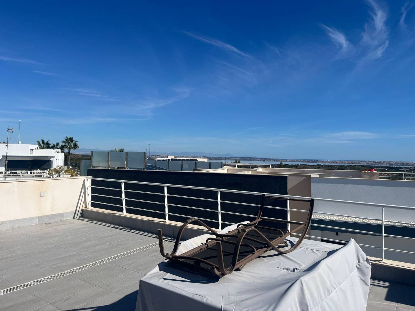 We present to you a true modern gem in San Miguel de Salinas (Alicante) , a fantastic contemporary villa designed for those seeking privacy, comfort, and quality of life on the Costa Blanca . This elegant home features three spacious and bright bedrooms and two full bathrooms , intelligently distributed to offer functionality and well-being in every corner. The designer open-plan kitchen , integrated into a spacious living-dining room, creates an open and sophisticated atmosphere, ideal for enjoying time with family or entertaining guests. The property is equipped with ducted air conditioning and heating , guaranteeing maximum comfort year-round. Outside, the home dazzles with its private swimming pool , surrounded by a meticulously maintained Mediterranean garden and inviting open terraces , perfect for relaxing, hosting al fresco gatherings, or simply enjoying the area's excellent climate. Furthermore, it features a security door and double-glazed windows , providing peace of mind and energy efficiency. Located in an area with excellent transport links , close to amenities, golf courses, and the best beaches on the Costa Blanca, this property represents a magnificent real estate investment in Alicante . A unique opportunity to make this wonderful villa your new home and begin a life of comfort and style.
